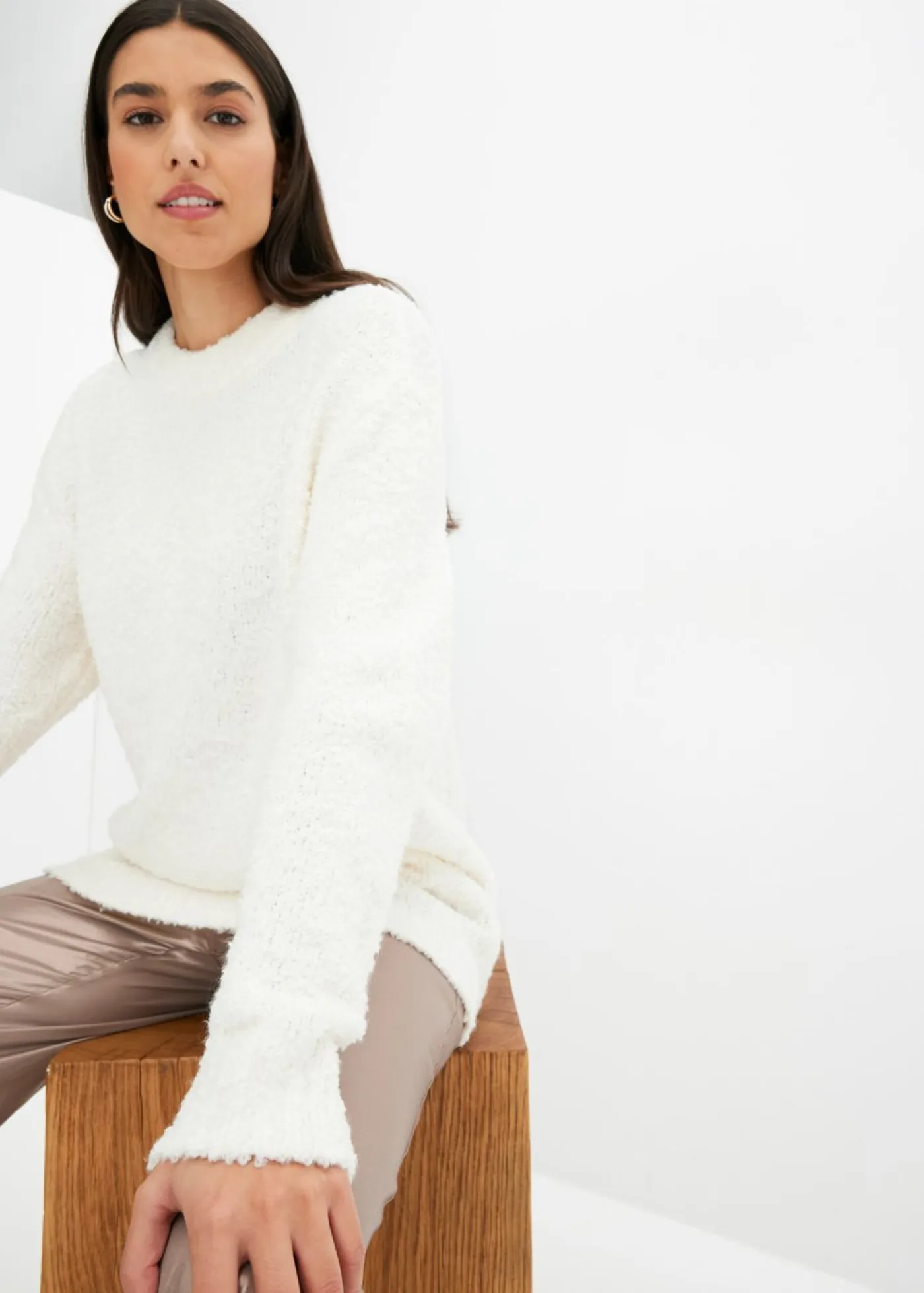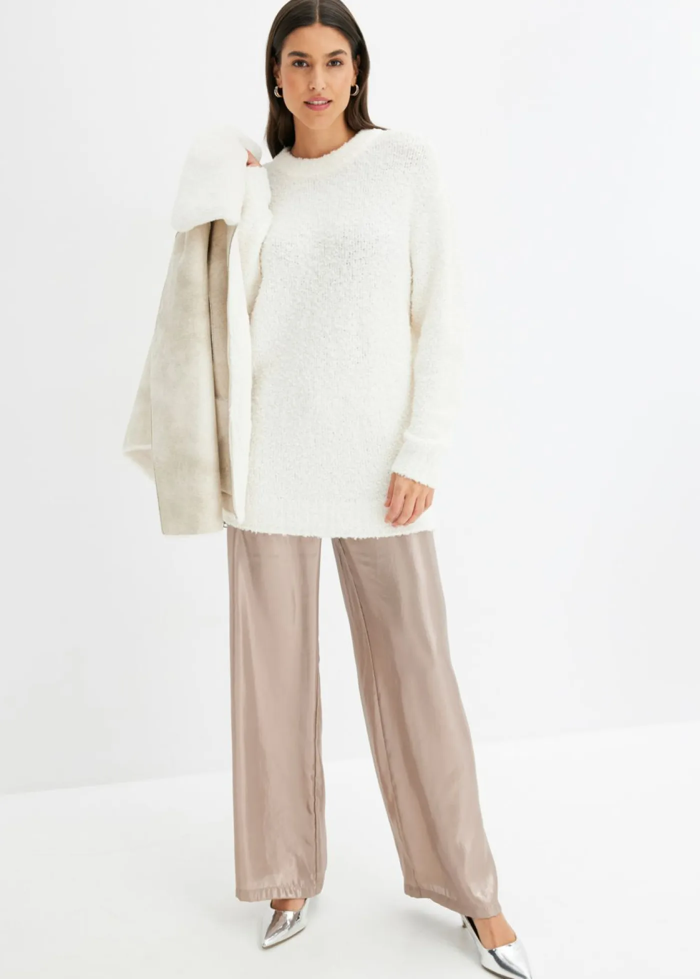 Jersey de bouclé suave con corte ancho. Largo de aprox. 74 cm en talla 40/42. Se puede lavar a máquina.