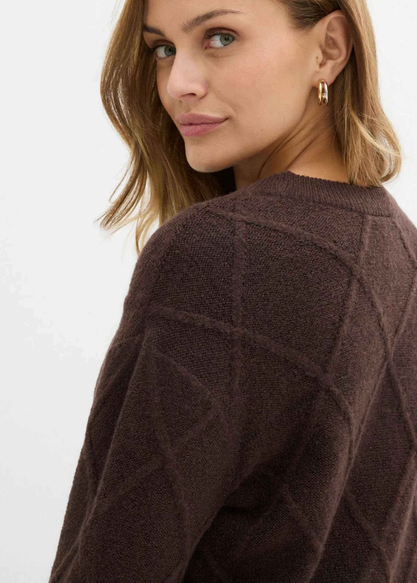 Jersey holgado informal con patrón trenzado. Modelo con cuello redondo y hombros caídos. Largo de aprox. 66 cm en talla 40/2.