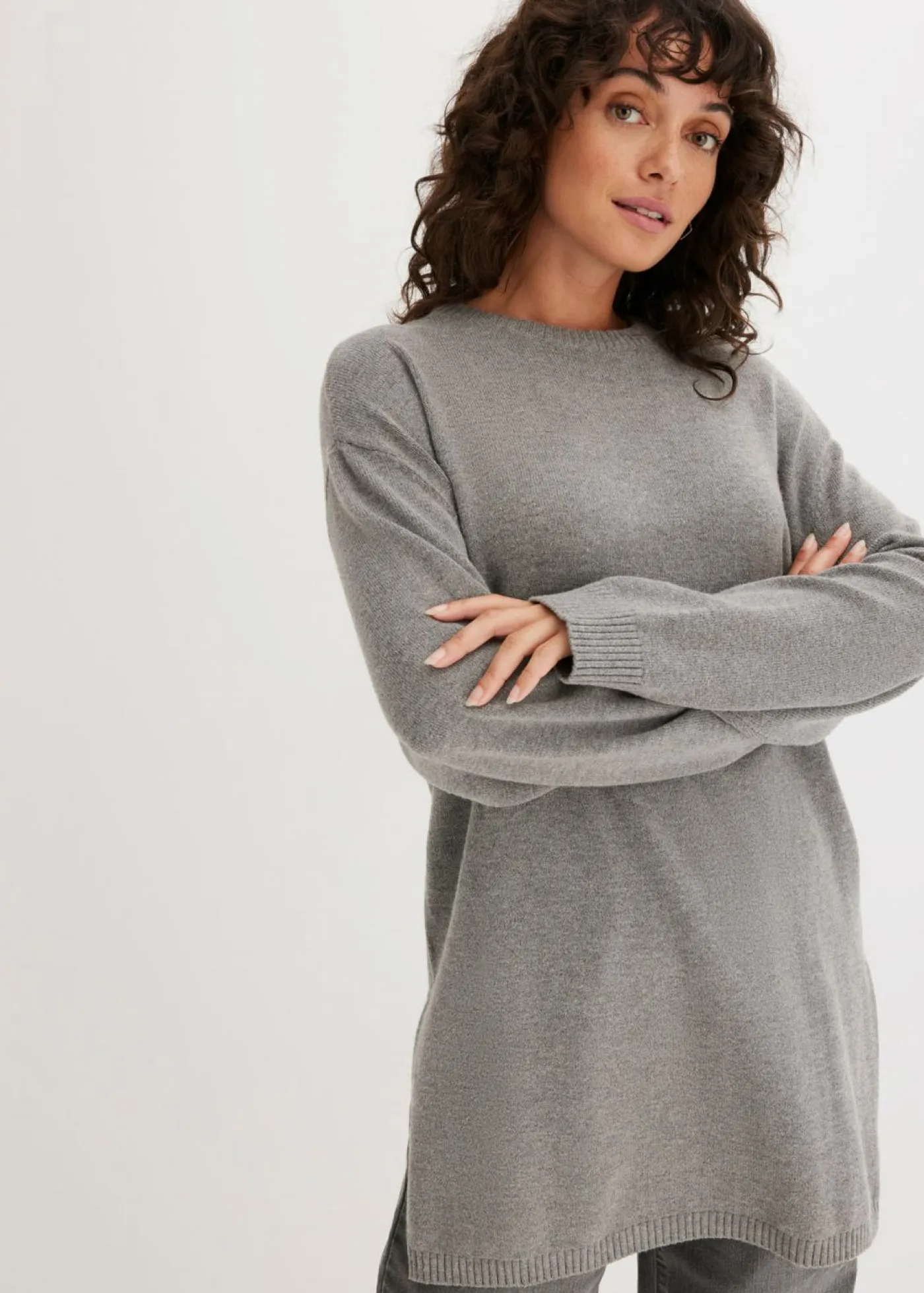 Jersey largo de punto fino con modernas aberturas laterales.