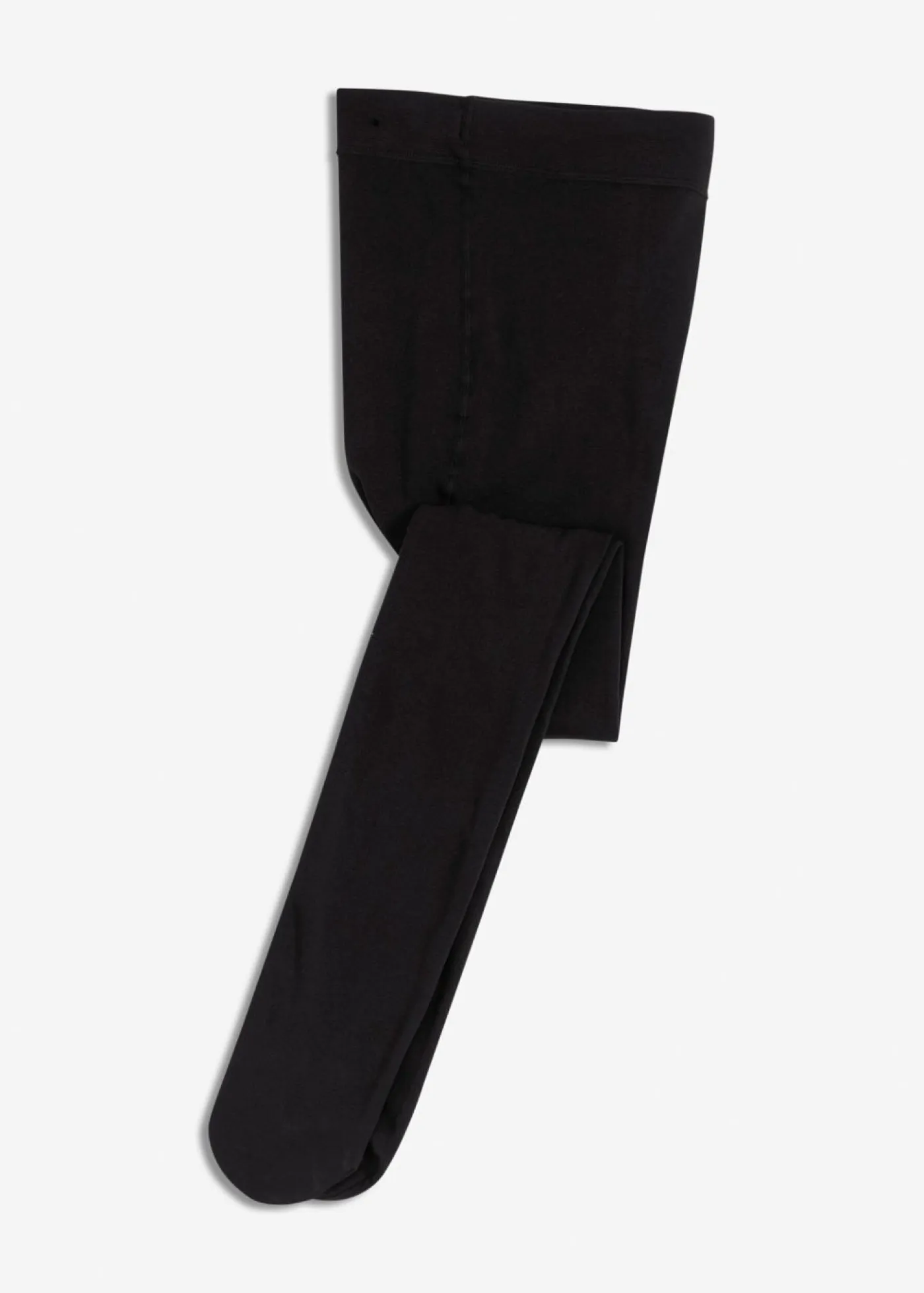 Medias térmicas funcionales para embarazadas con cintura ajustable. Las medias térmicas son opacas y cuentan con un interior cálido de suave tejido polar. Como el elástico es ajustable en anchura, se puede adaptar al crecimiento del vientre durante el embarazo.