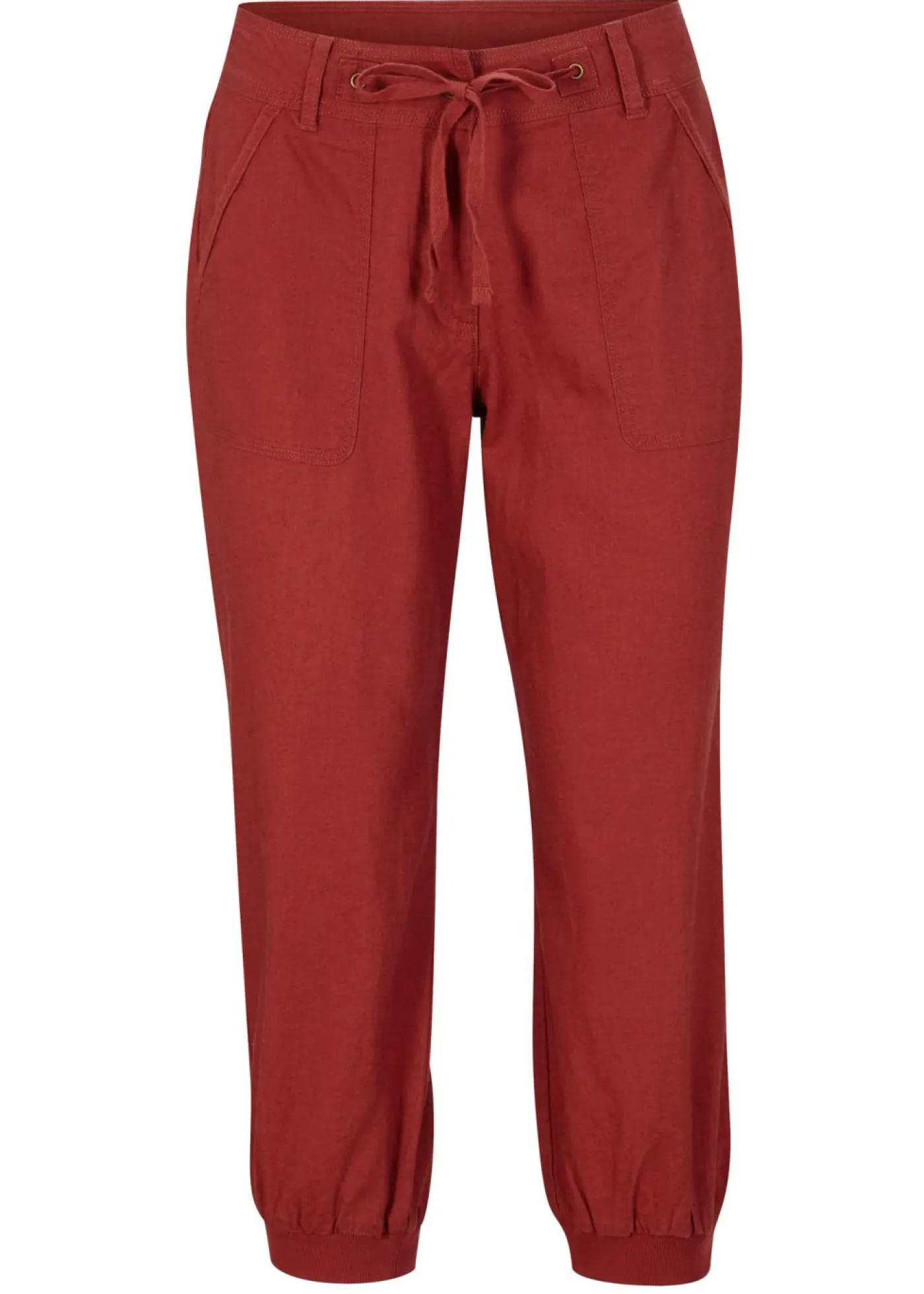 Pantalón capri de lino con bajo de canalé y corte holgado. Largo interior de la pierna de aprox. 55 cm en talla 42. Se puede lavar a máquina.