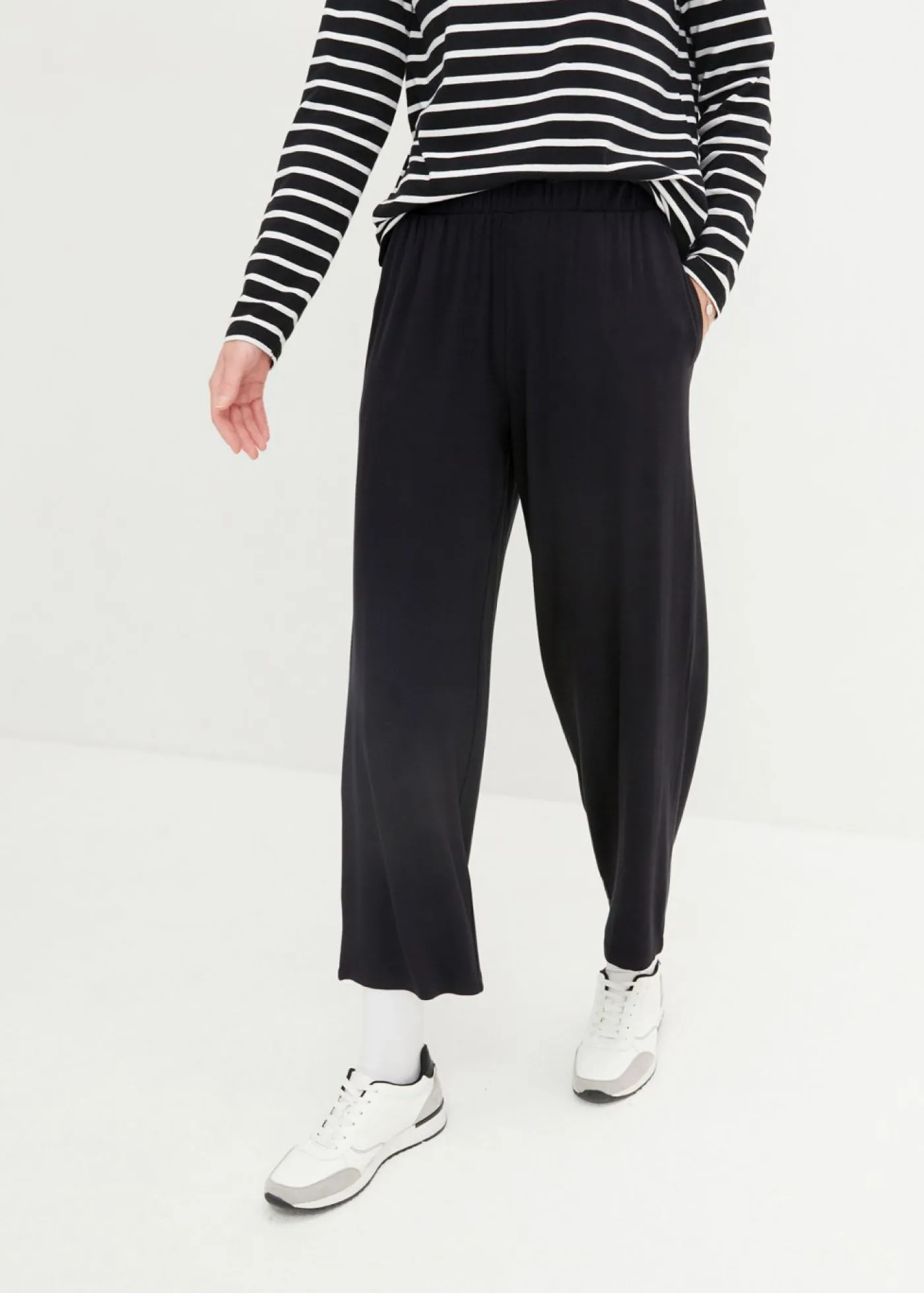 Pantalón ancho de largo 7/8 con cinturilla cómoda y bolsillos (2 unidades). Largo interior de la pierna de aprox. 59,5 cm en talla 40/42. Se puede lavar a máquina.