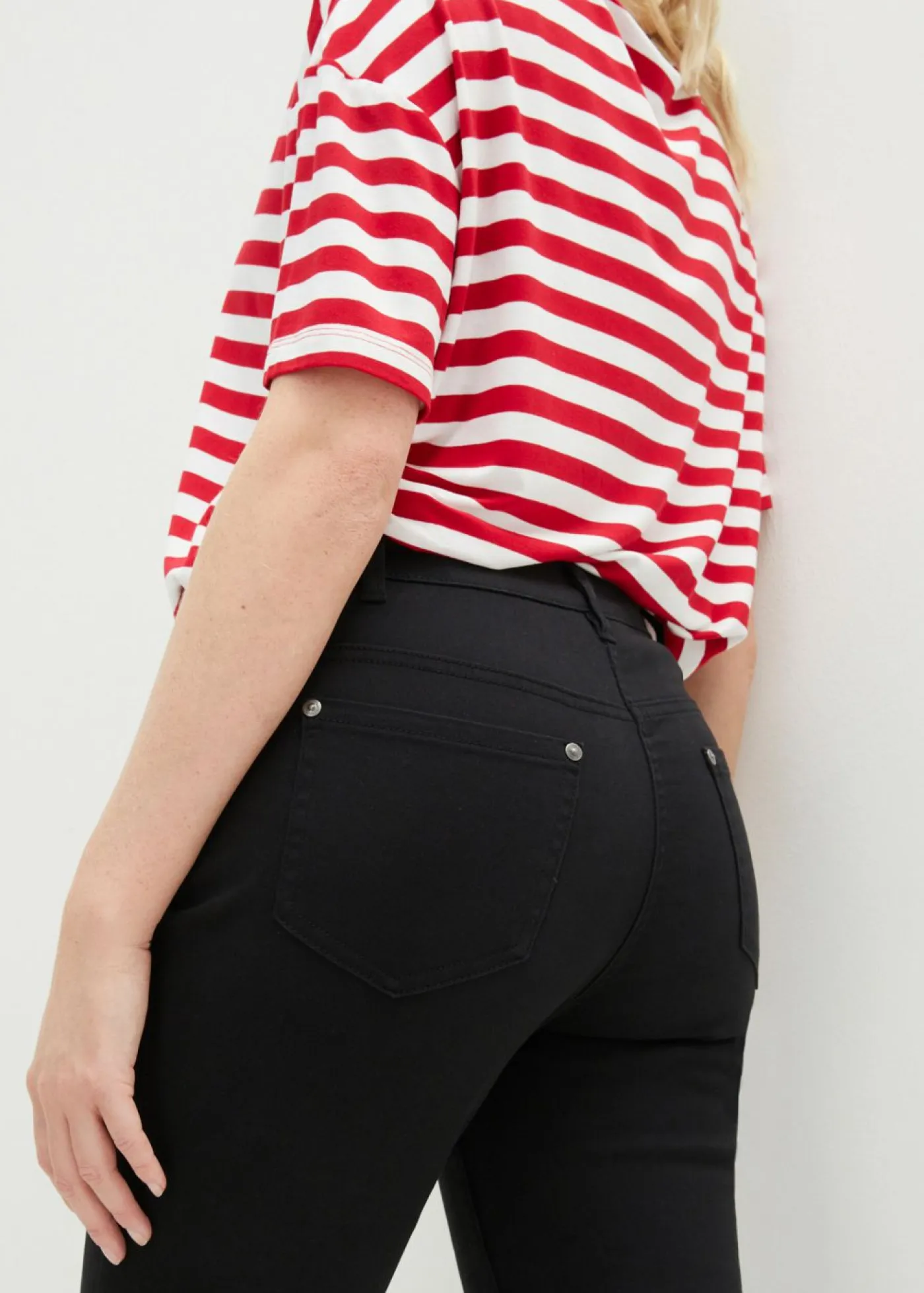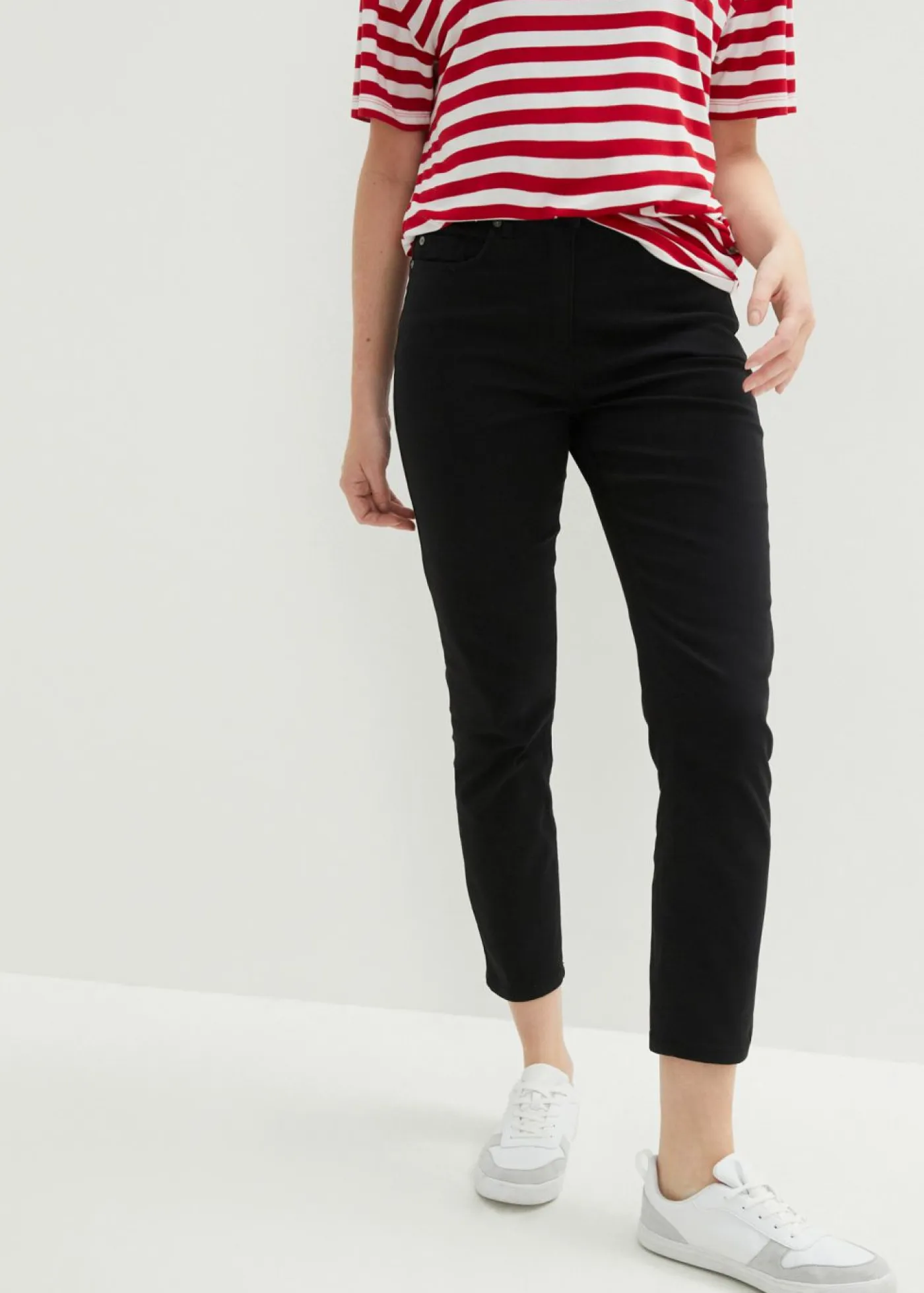 Pantalón elástico acortado con estilo de 5 bolsillos y pierna slim. Largo interior de la pierna de aprox. 65,5 cm en talla 42. Se puede lavar a máquina.