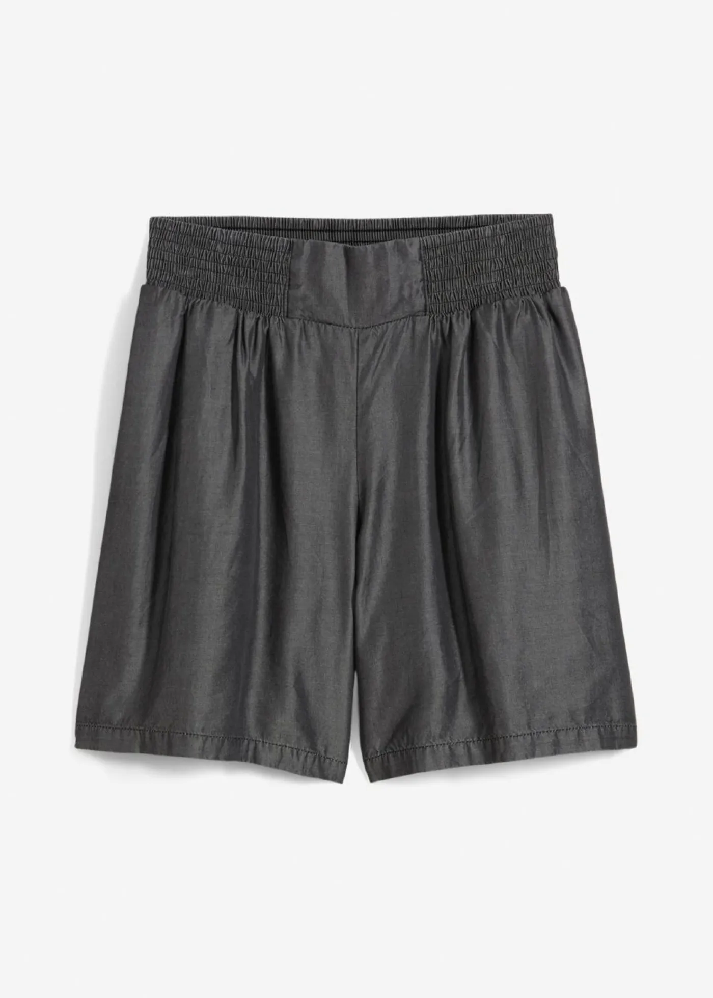 Pantalón corto ancho de lyocell con talle alto y cinturilla elástica para lograr una gran comodidad. Largo interior de la pierna de aprox. 20,5 cm en talla 42. Se puede lavar a máquina.