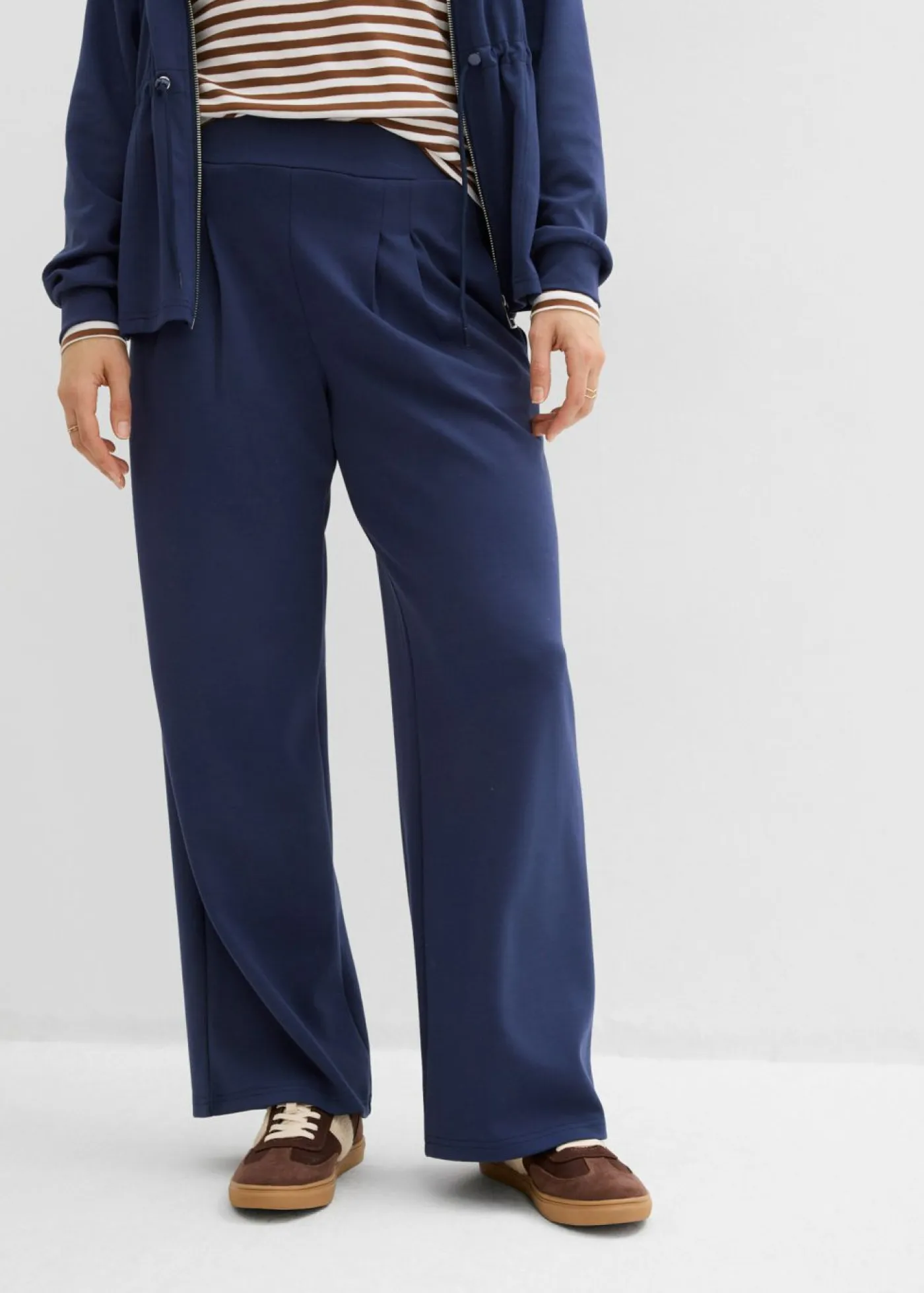 Pantalón palazzo de corte amplio confeccionado con una mezcla de materiales de tacto suave. Con cinturilla elástica y bolsillos laterales. Largo interior de la pierna de aprox. 76,5 cm en talla 40/42. Se puede lavar a máquina.