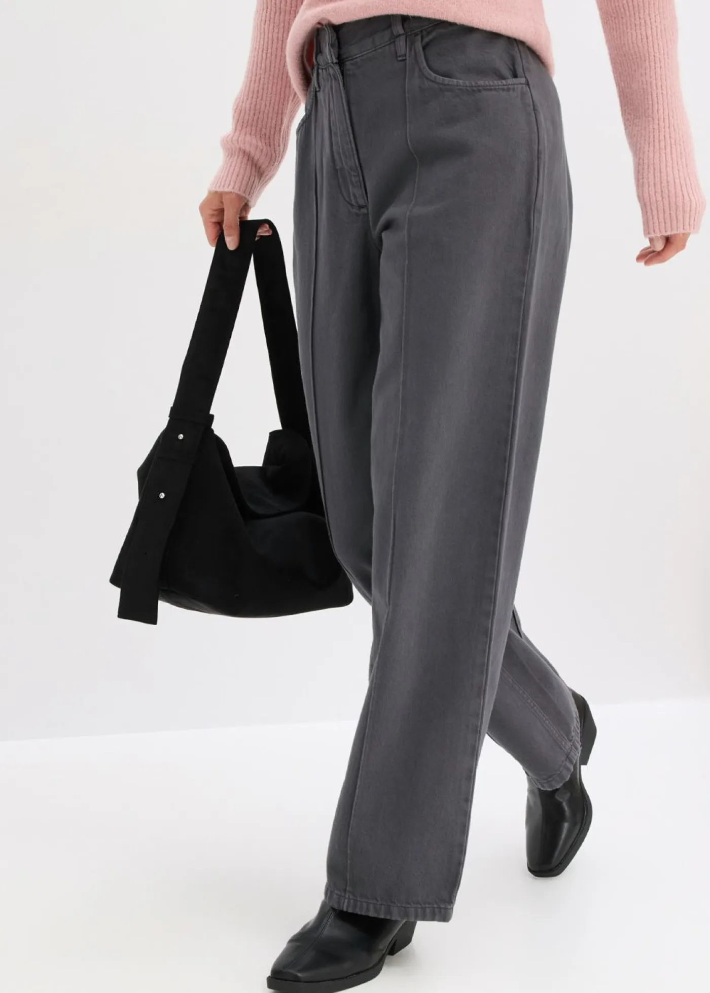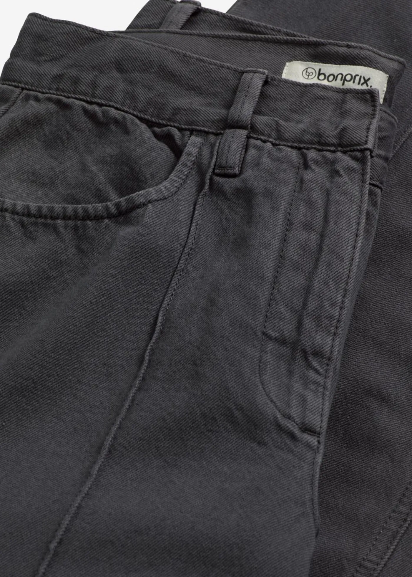 Pantalón informal de sarga con perneras anchas y bolsillos laterales.