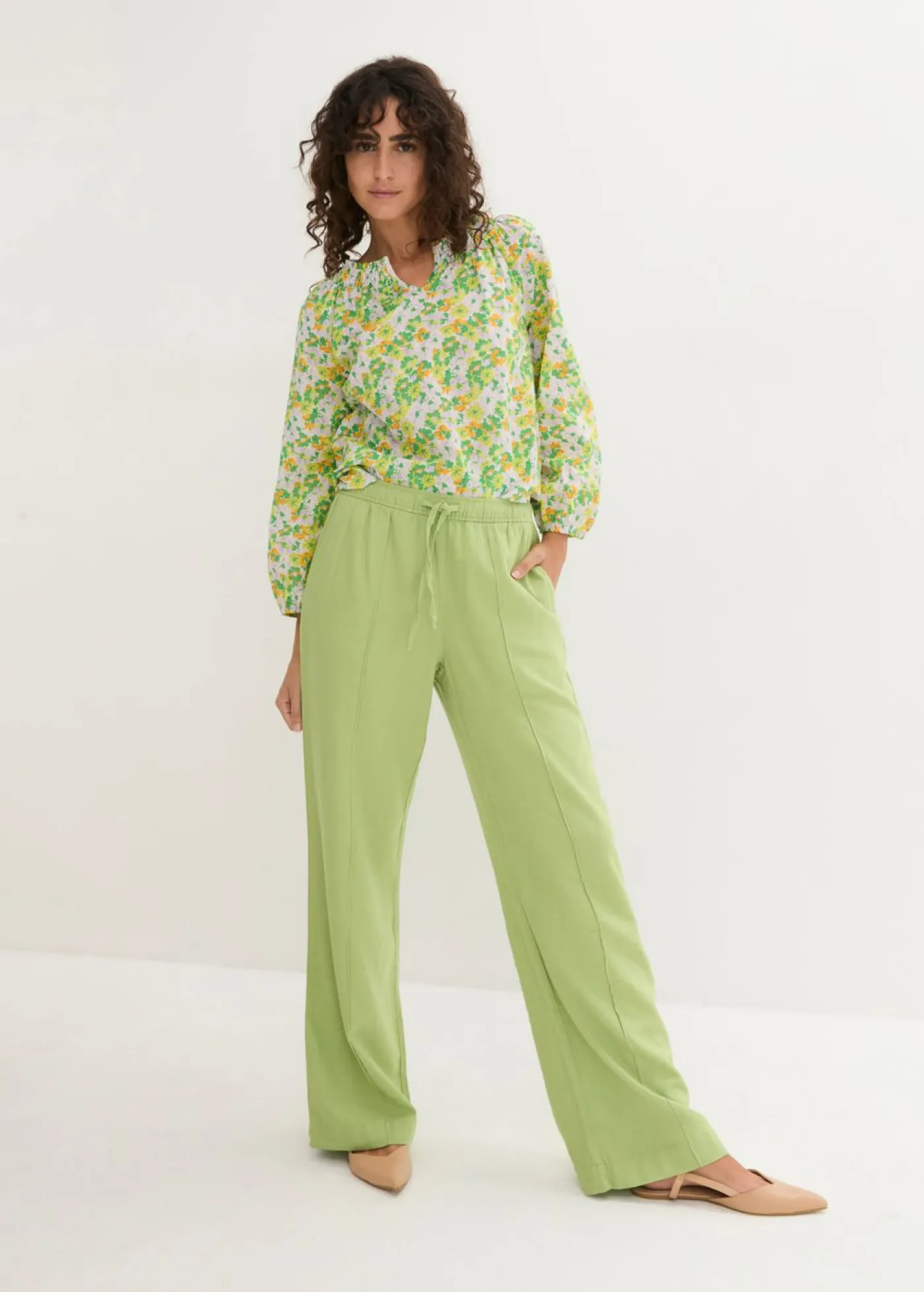 Pantalón de lino hasta el tobillo con ajuste informal y perneras anchas.