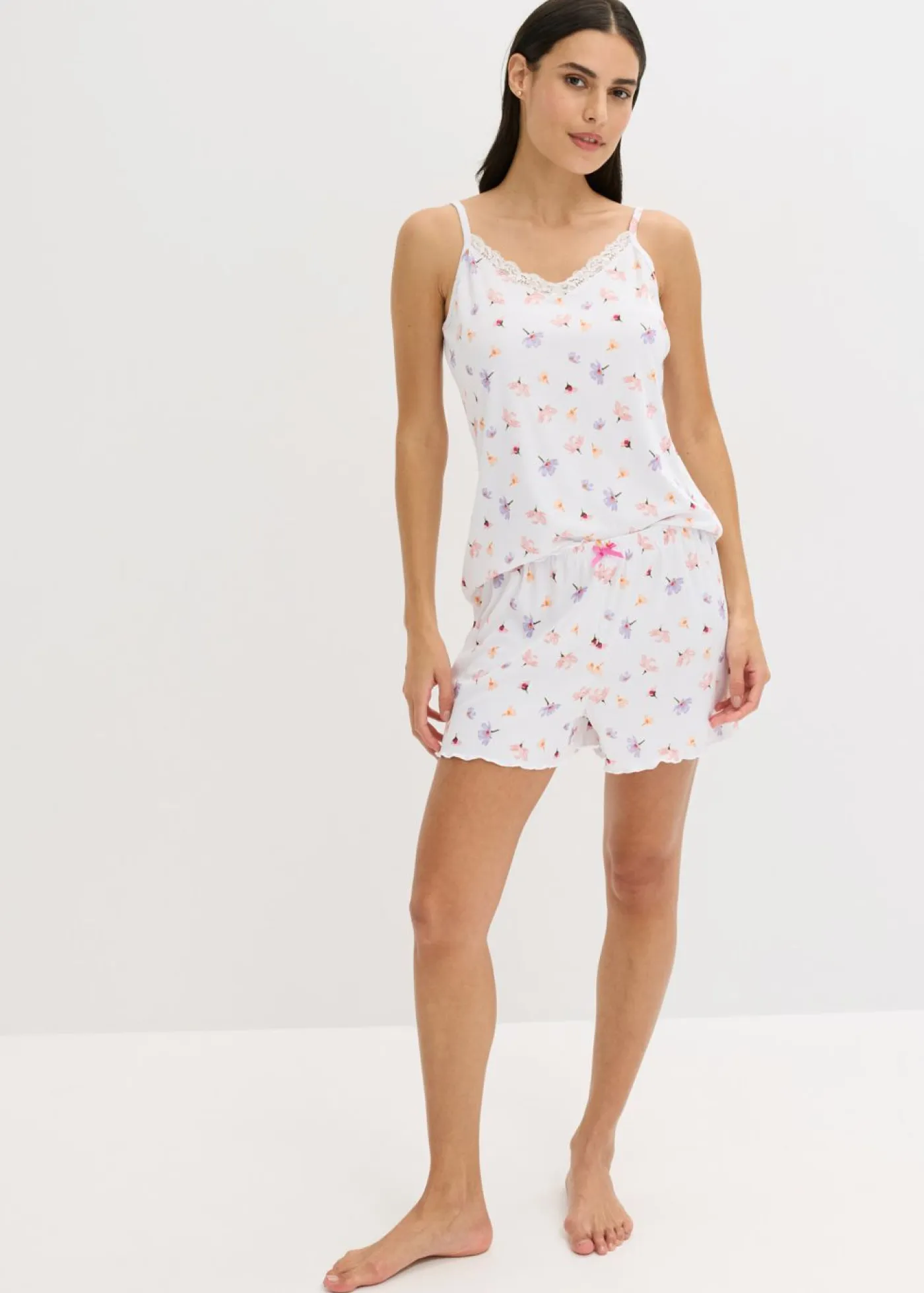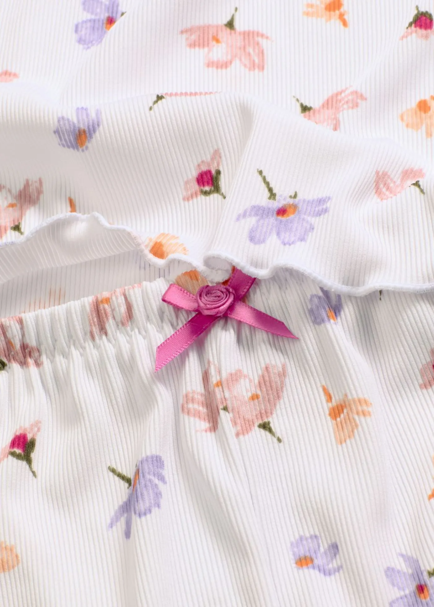 Agradable pijama corto de canalé con un bonito encaje.
