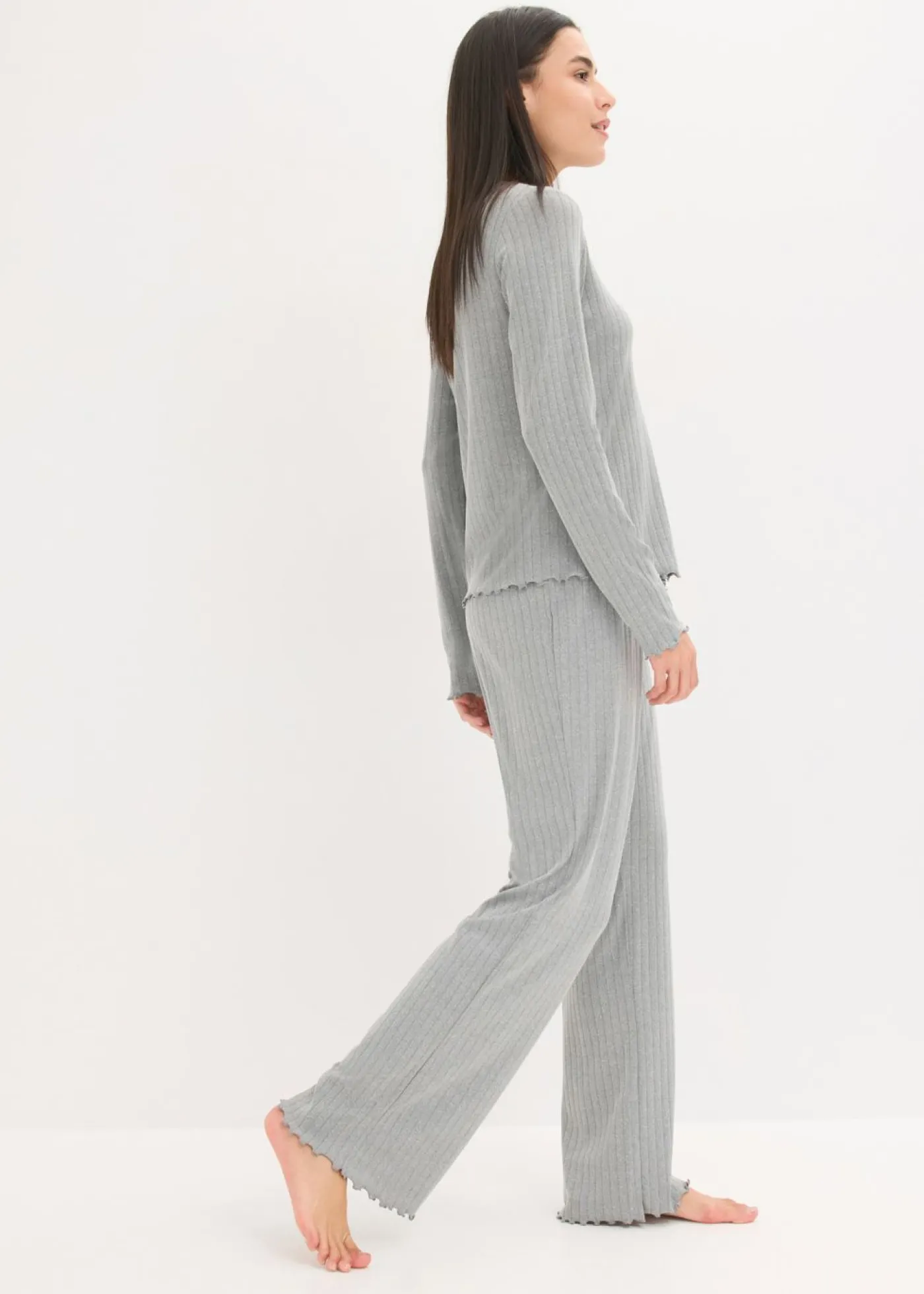Agradable pijama con borde ondulado en el dobladillo.