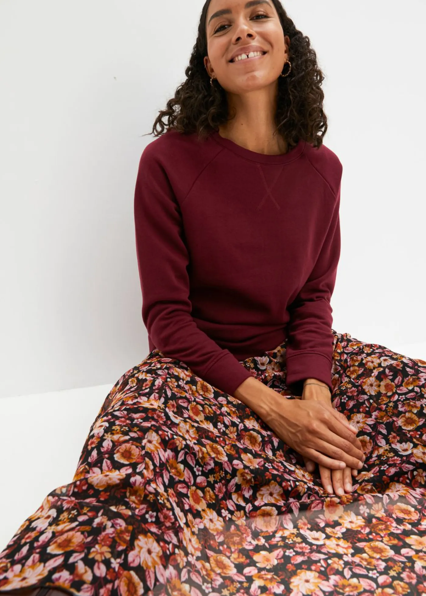 Sudadera básica con cuello redondo. Largo total de aprox. 66 cm en talla 40/42. Se puede lavar a máquina.