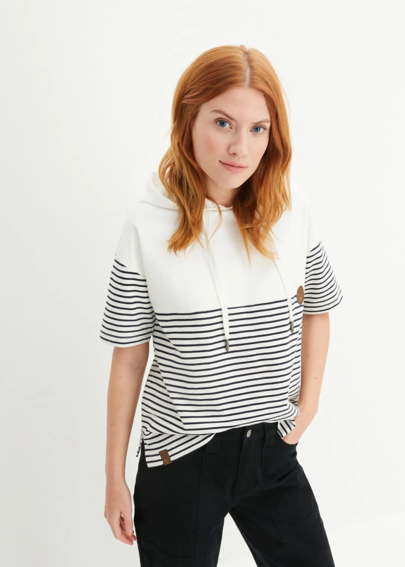Sudadera de corte holgado con capucha y manga corta.