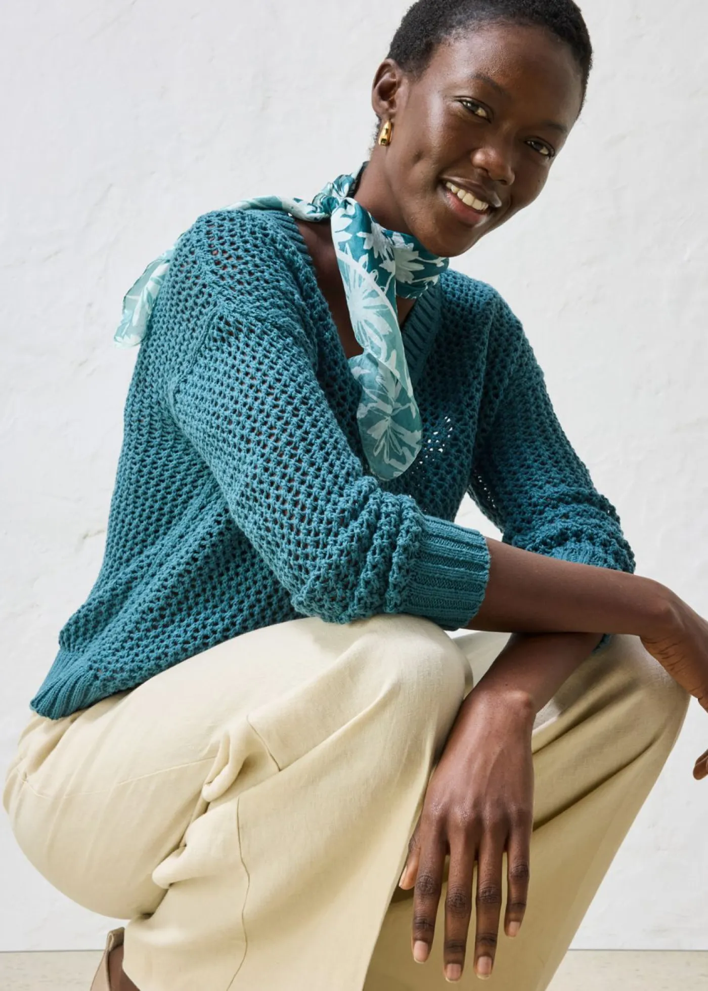 Jersey con un bonito ajour y una ligera mezcla de lino.