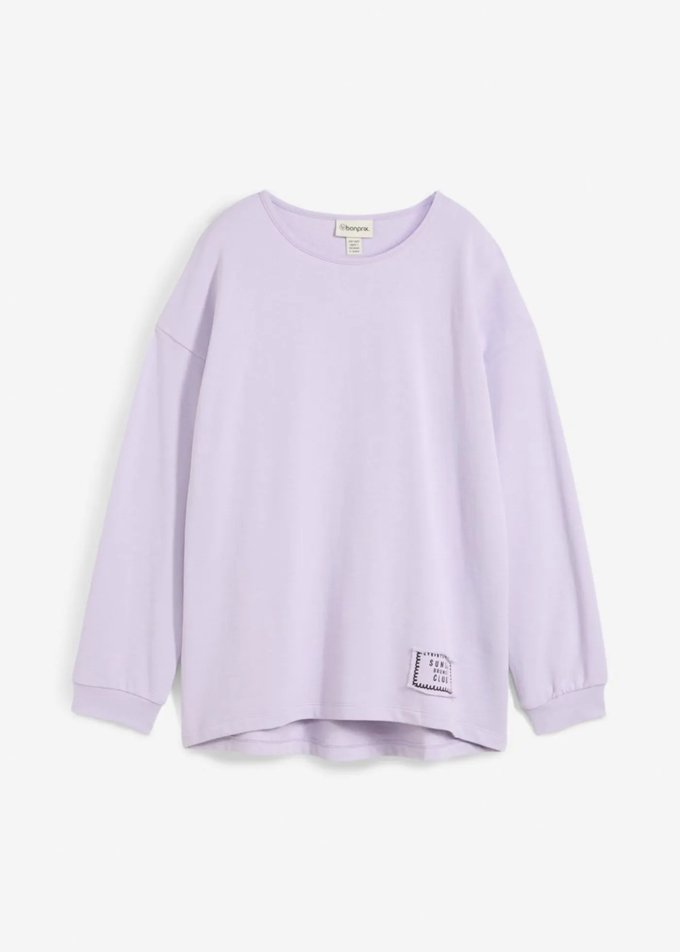 Sudadera de manga larga con dobladillo asimétrico. Largo de aprox. 68 cm en talla 40/42. Se puede lavar a máquina.