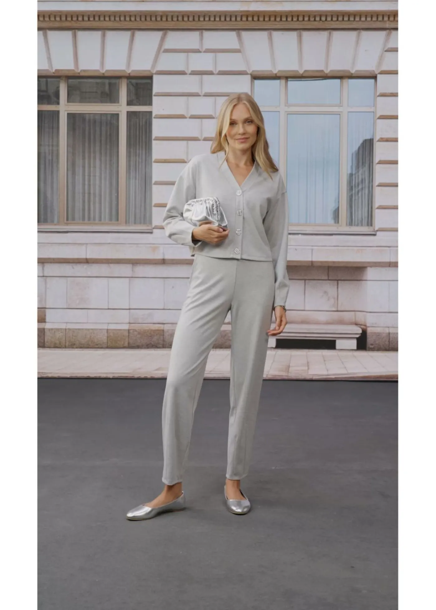 Sudadera corta con pinzas a juego y cierre de botones en la parte delantera.