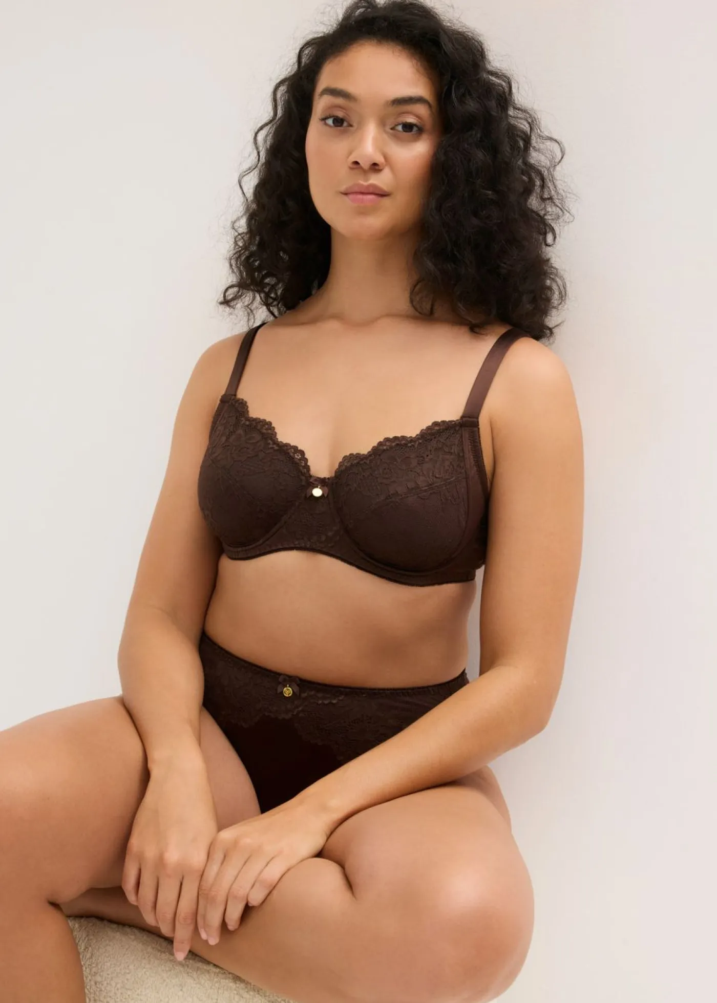 | Material | Material externo: 79% poliamida (reciclado), 21% elastano; Forro de malla: 100% algodón; Encaje: 88% poliamida, 12% elastano |