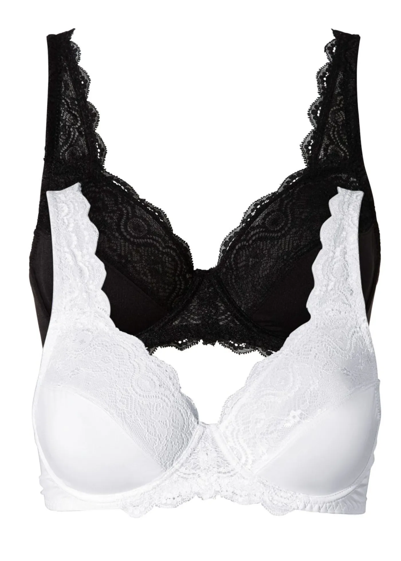 Sujetador elegante un encaje suave. Ambos sujetadores resultan absolutamente imprescindibles para el día a día. Un encaje de gran calidad decora el atractivo sujetador con aros. Adorna la mitad superior de las copas y se prolonga armoniosamente en los tirantes. Un gran básico en un paquete doble para el día a día.