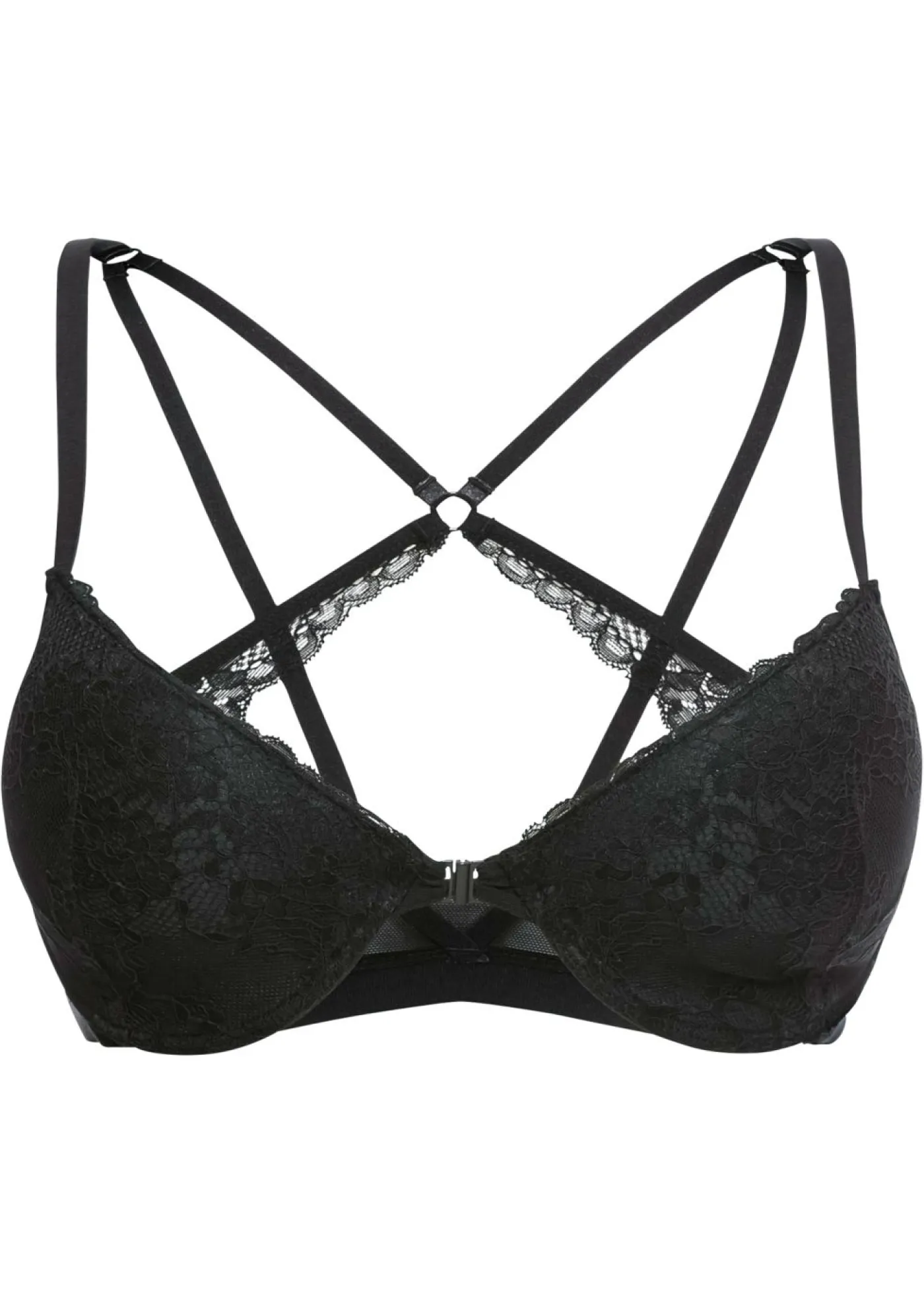 Sujetador moderno con una solución especial en la espalda. Este elegante sujetador representa un sujetador moderno con un diseño emocionante en la parte posterior. El sujetador se abre por delante.