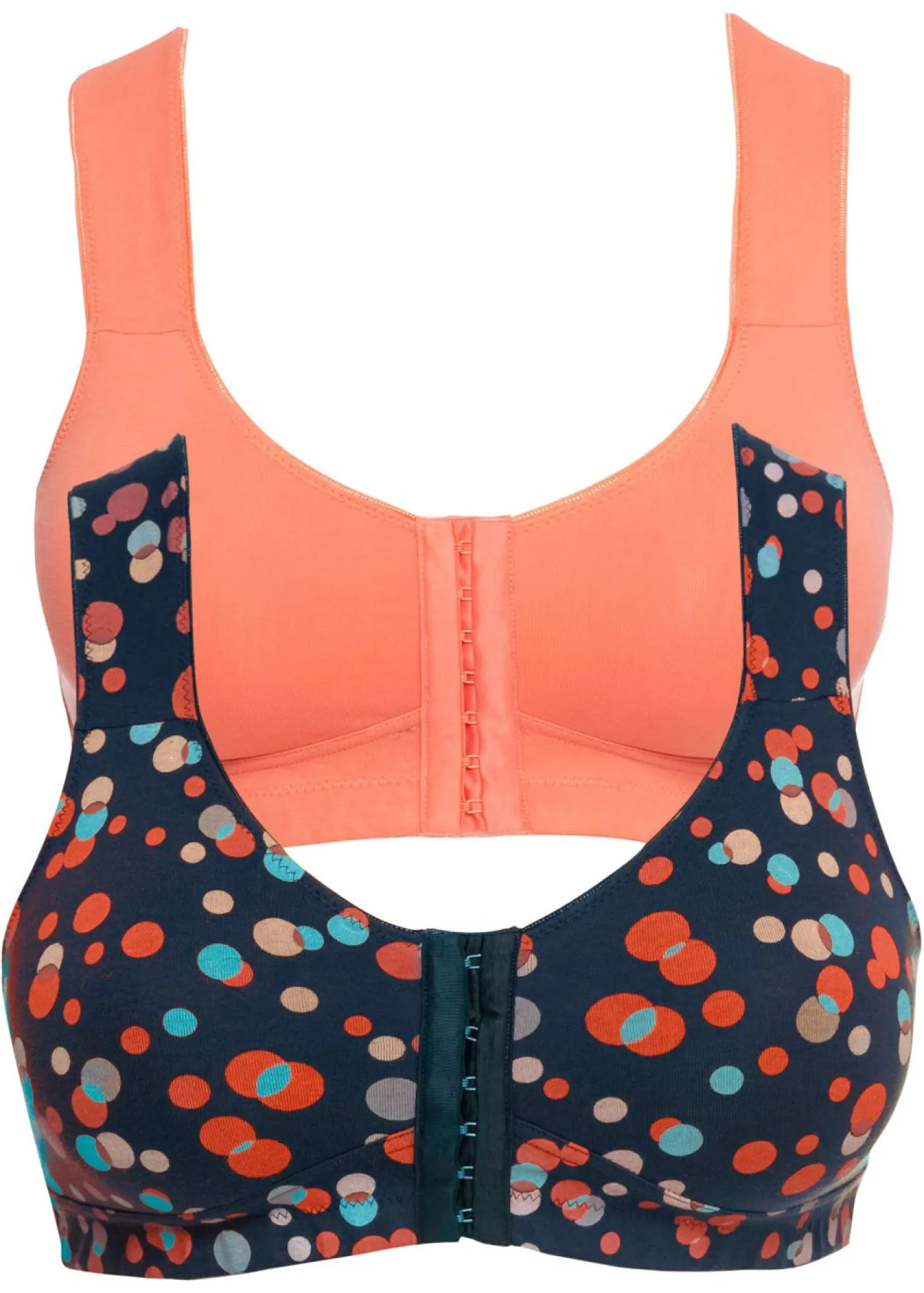 Divertido sujetador con cierre delantero en un práctico paquete de 2 unidades. Este sujetador cuenta con un cierre en la parte delantera. Esto hace que sea especialmente fácil de cerrar y muy cómodo de llevar gracias a su suave material. Viene en un práctico paquete de 2 unidades e inspira con un bonito estampado que atrae todas las miradas.