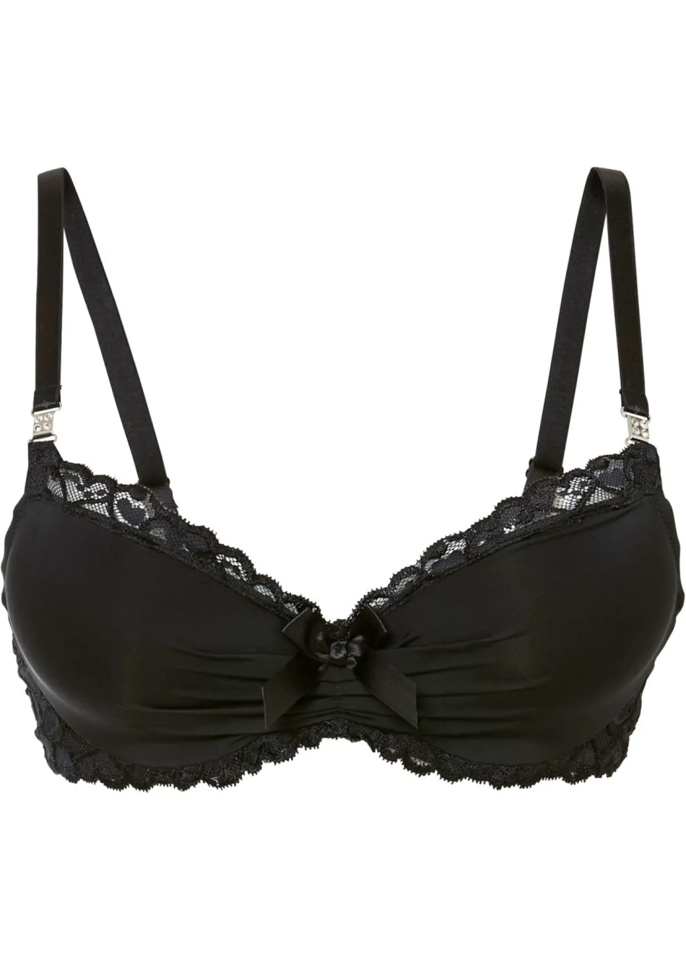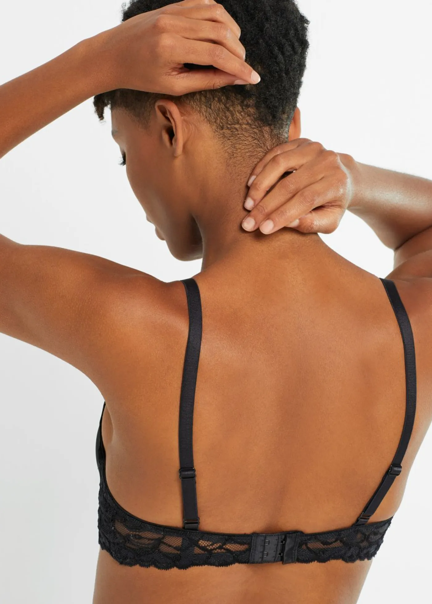 Sujetador con copas acolchadas y elaborados detalles. El sujetador de copa de BODYFLIRT es un auténtico atractivo. Los bordes de las copas y los laterales del sujetador están adornados con fino encaje. El centro del sujetador también está adornado con sofisticados pliegues drapeados y un lazo de satén. Los apliques de piedras brillantes en los tirantes también añaden ese toque especial. Las copas del sujetador son acolchadas y están preformadas. Además, los cómodos aros moldeados ofrecen una sujeción óptima. Maite recomienda: «Este conjunto está muy de moda. Para la mujer con inclinación romántica a la que le gusta vivir su lado más coqueto. Este conjunto resalta todo su encanto y le da la luz adecuada».