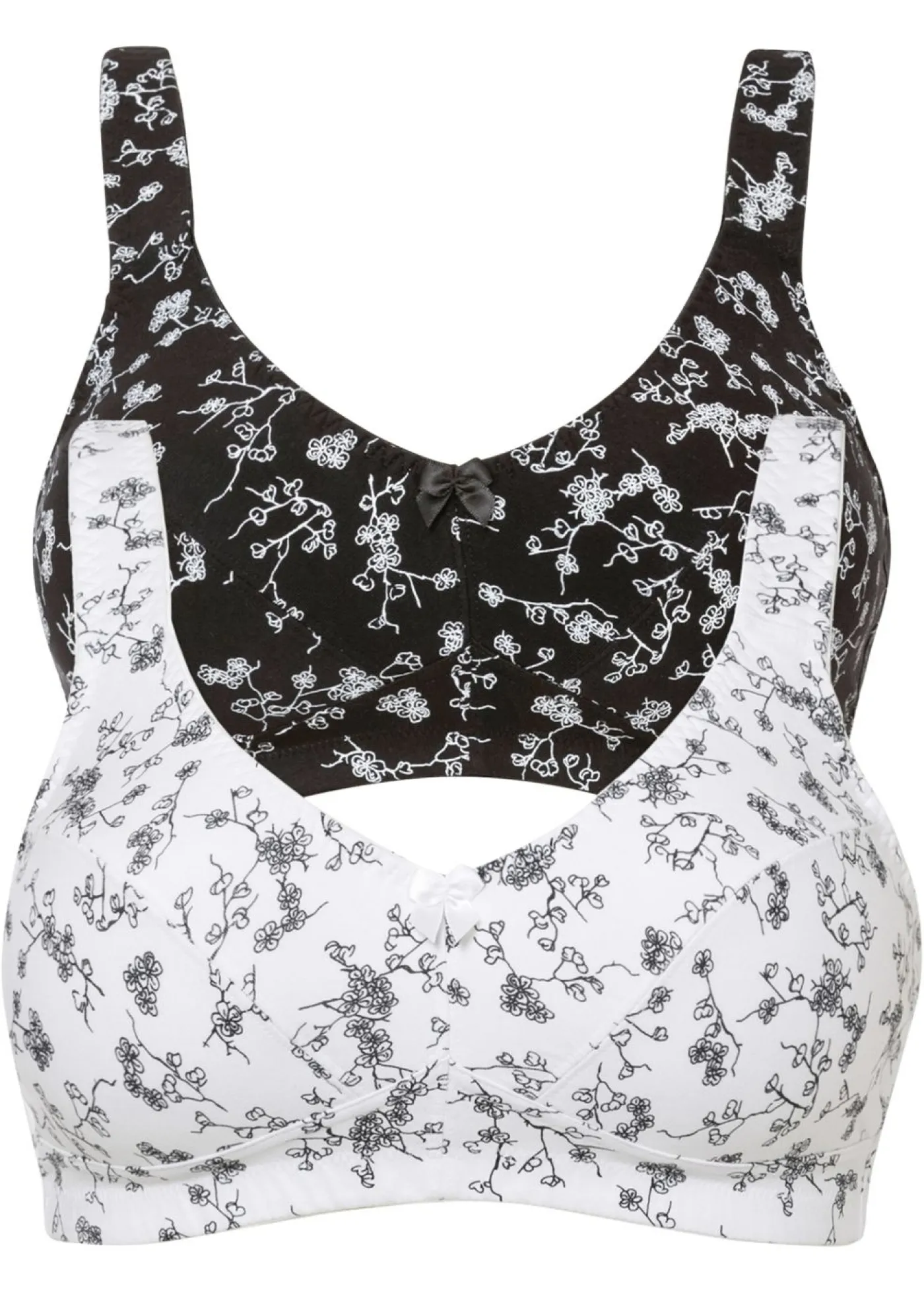 Cómodo sujetador con un bonito estampado integral. Sujetador sin aros en un atractivo paquete doble. Con un material de algodón cómodo de llevar. Con un estampado de flores integral. Los tirantes ligeramente acolchados alivian los hombros y ofrecen una agradable comodidad de uso.