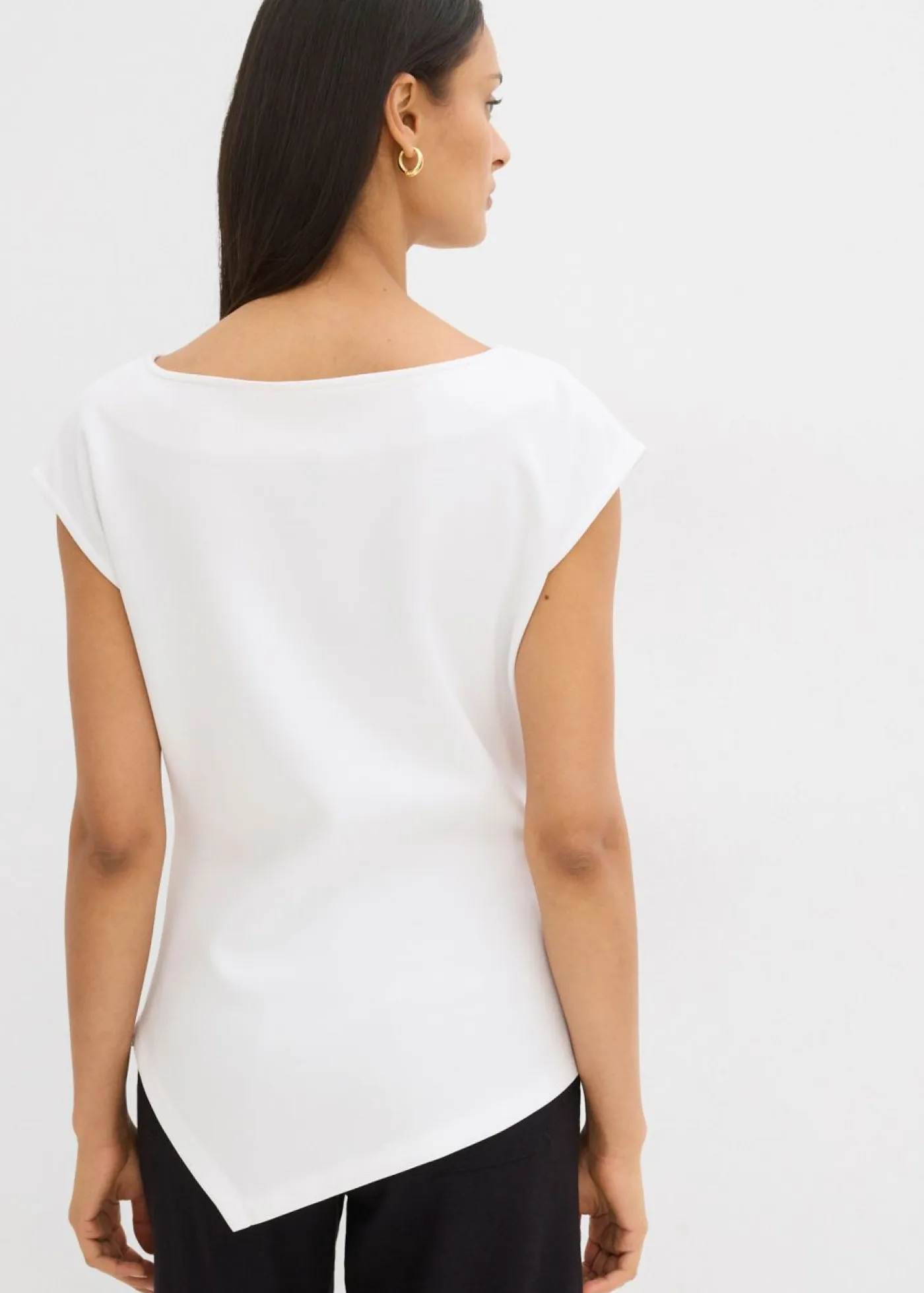 Top sin mangas con detalle drapeado en el lateral y dobladillo asimétrico.