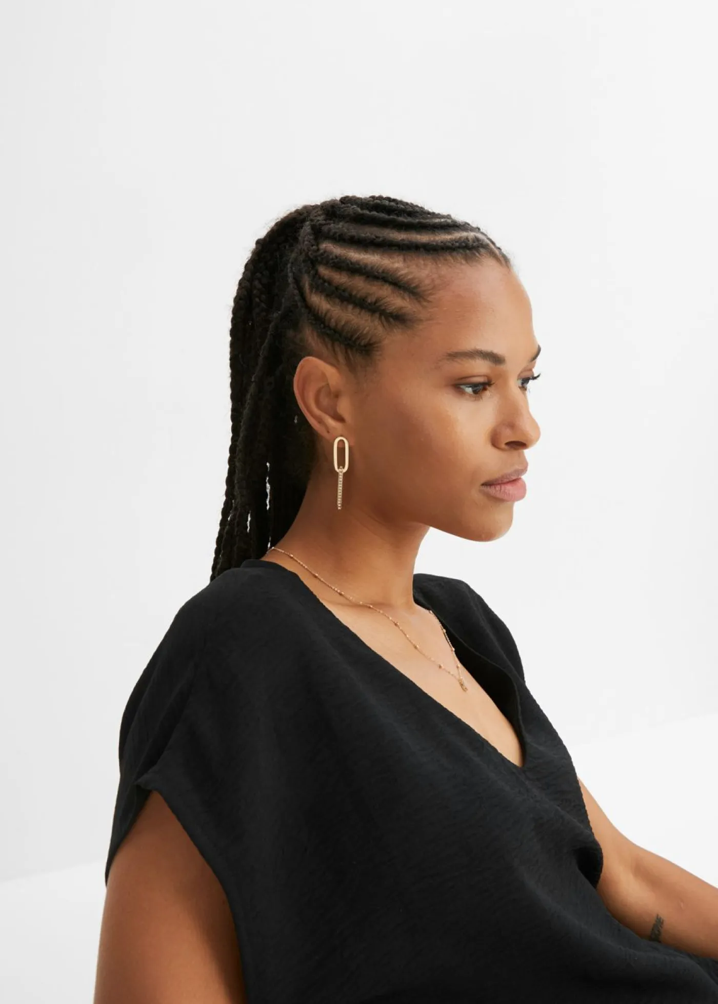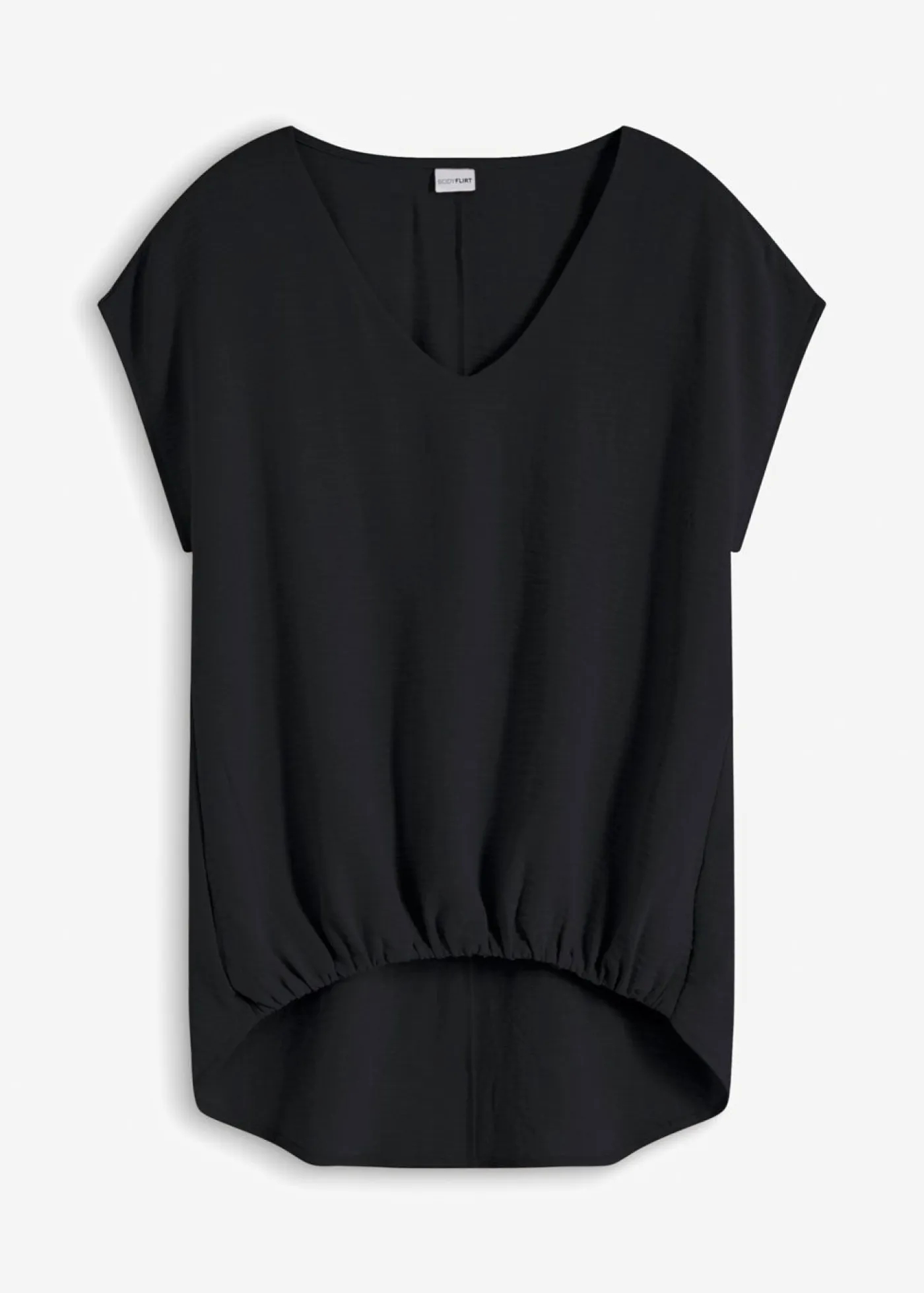 Top elegante con fruncido en la parte delantera del dobladillo y ligeramente más largo por detrás.