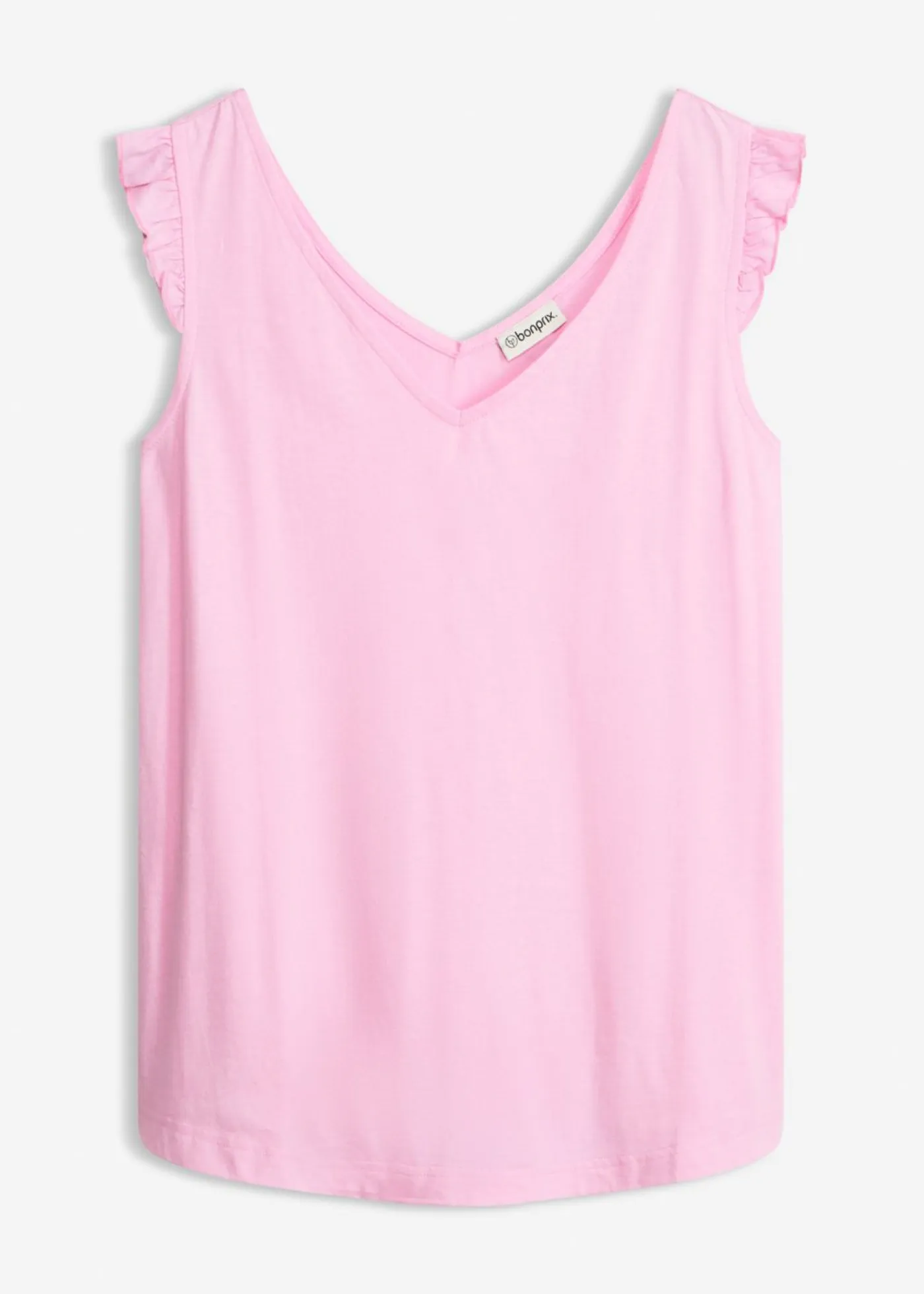 Top con volantes. Dobladillo redondeado. Largo de aprox. 64 cm en talla 38.