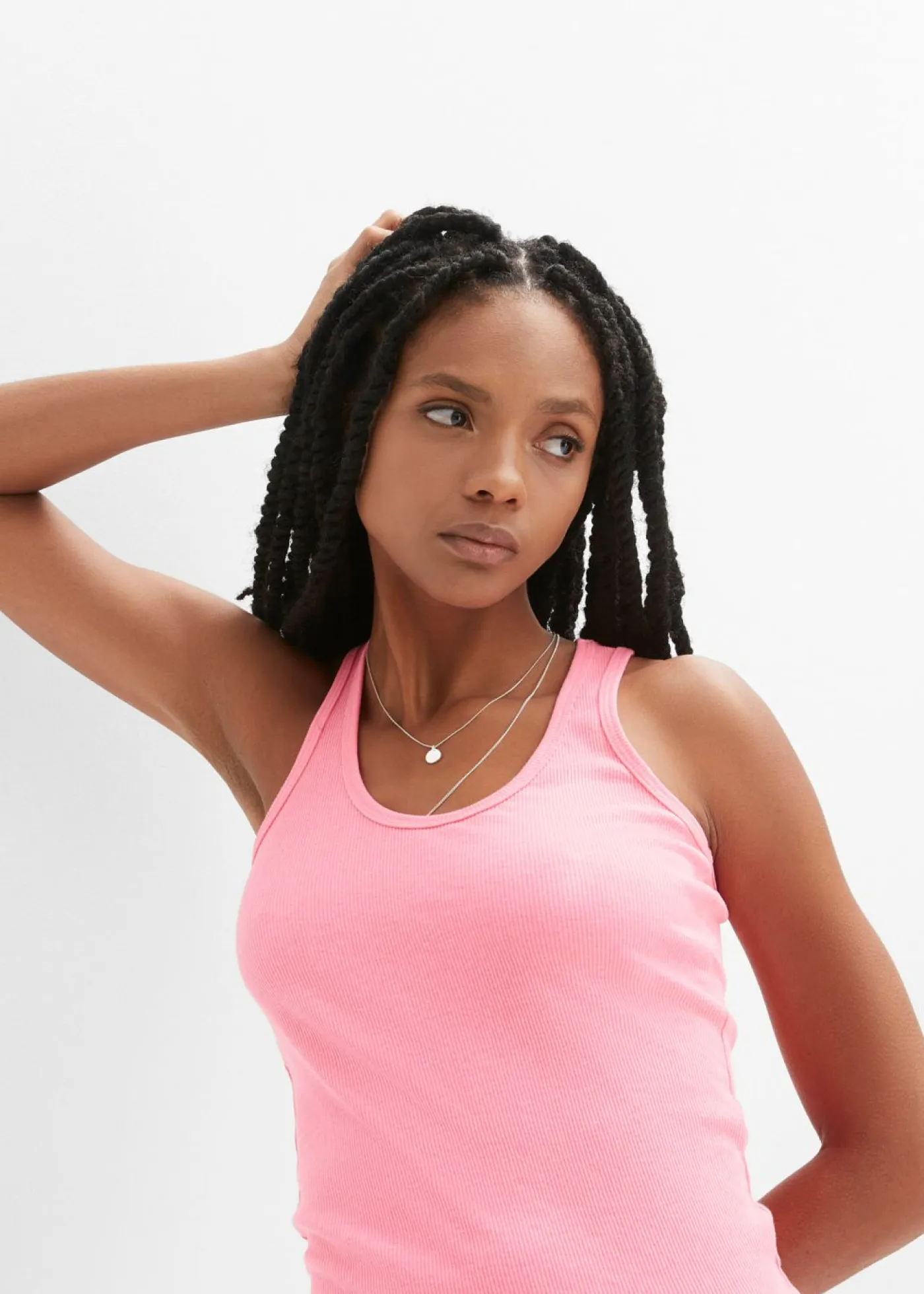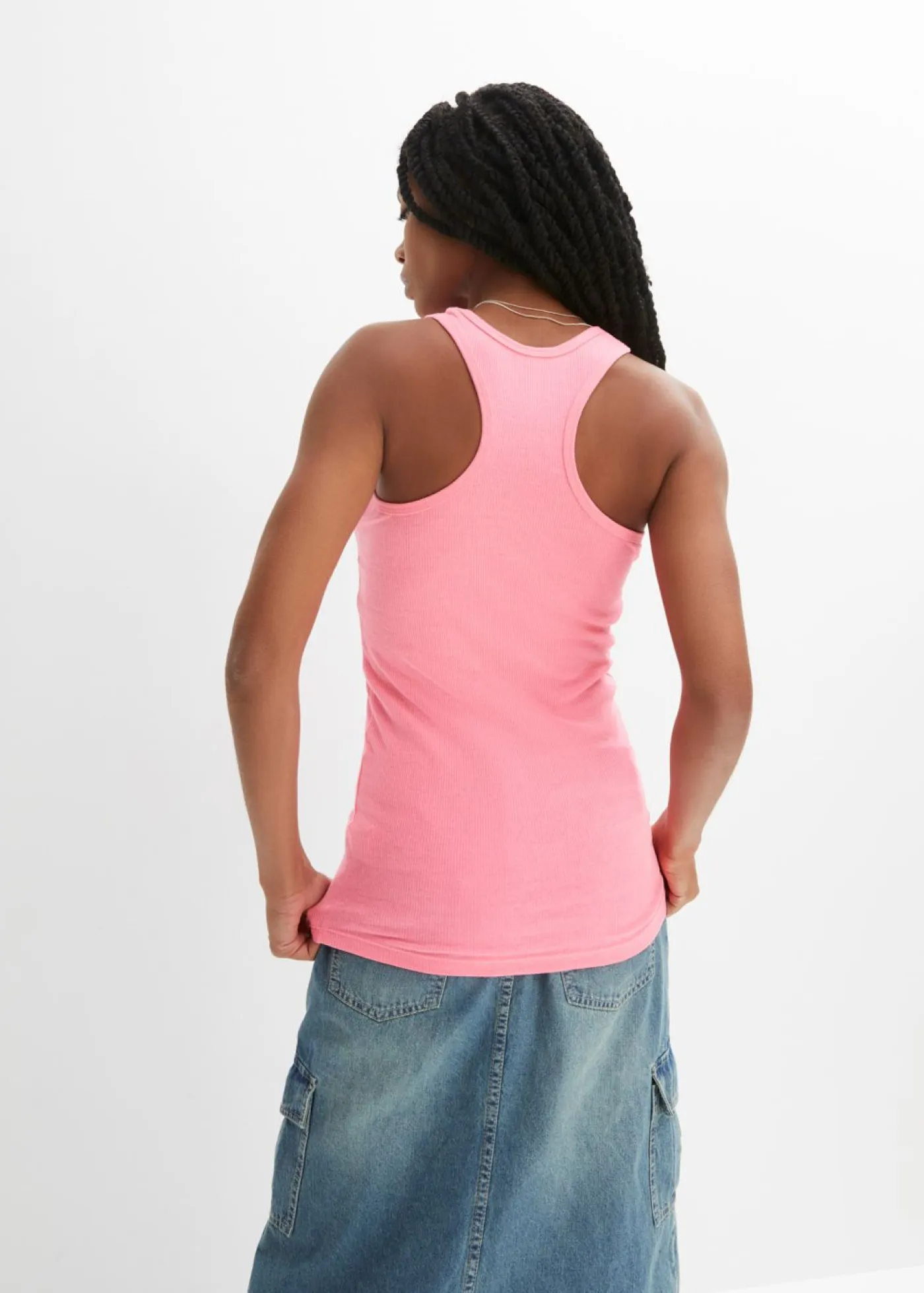 Top ajustado de canalé fino. En cómodo tejido acanalado con espalda deportiva de tirantes. Largo de aprox. 68 cm en talla 36/38.
