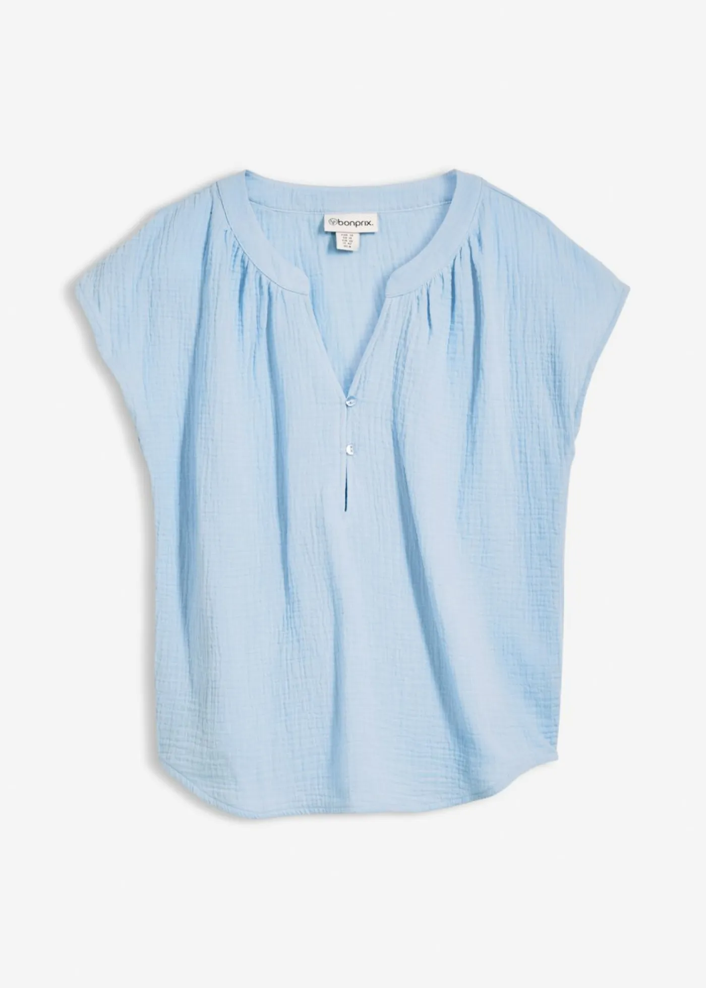 Moderna blusa de muselina con escote en V y hombros caídos. Largo de aprox. 58 cm en talla 42. Se puede lavar a máquina.