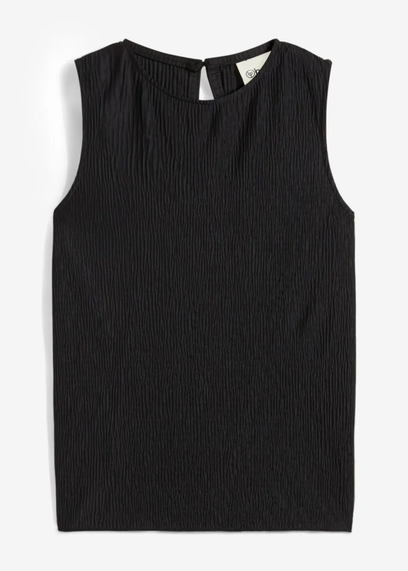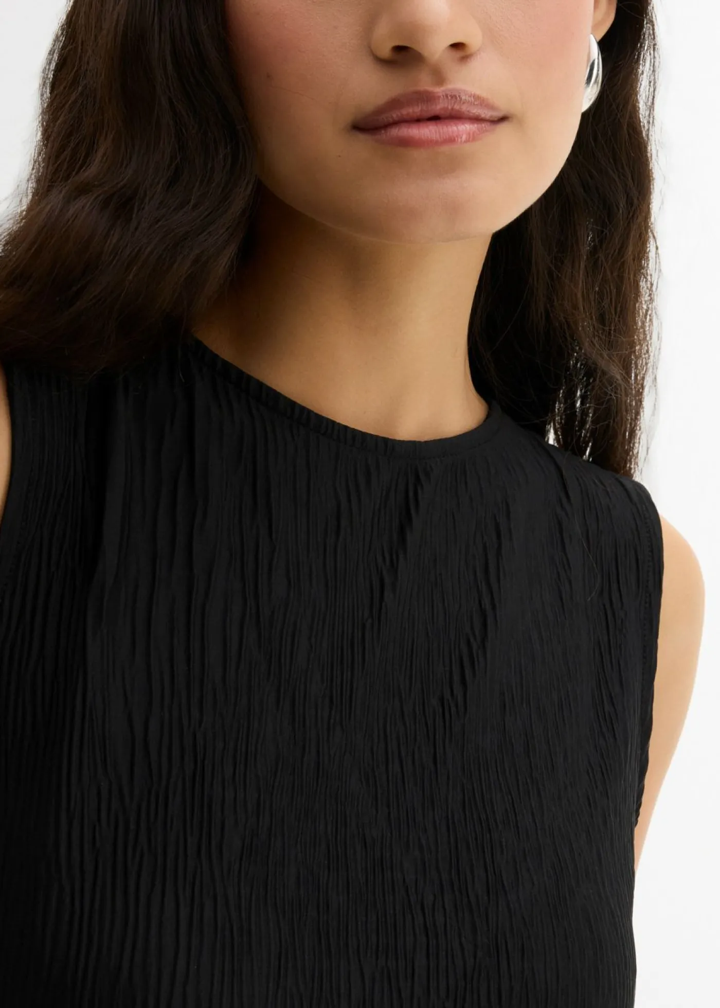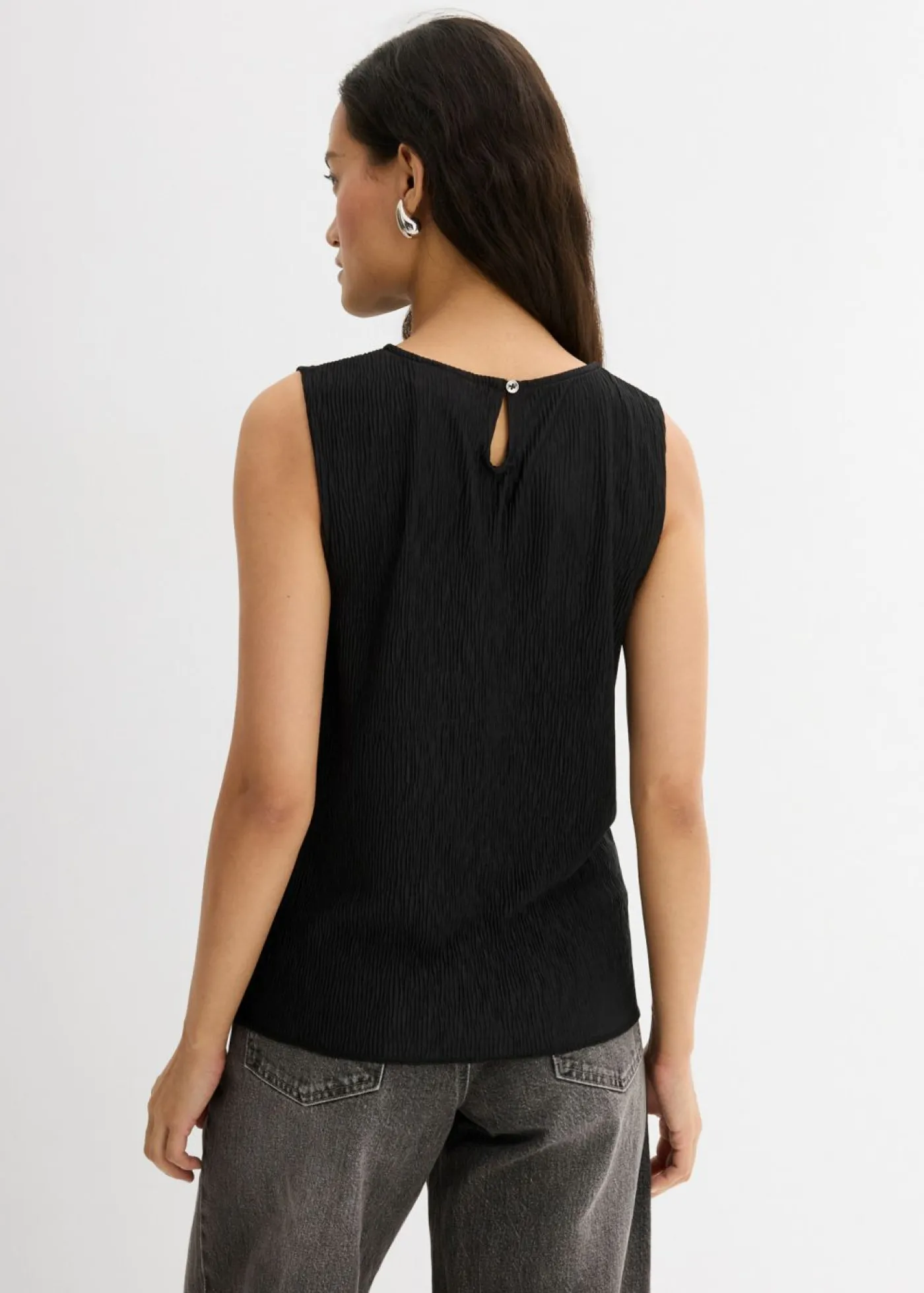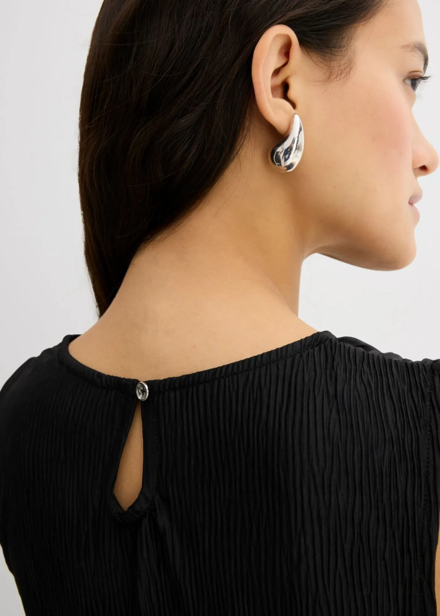 Blusa ancha con cuello redondo y botones en la parte trasera.