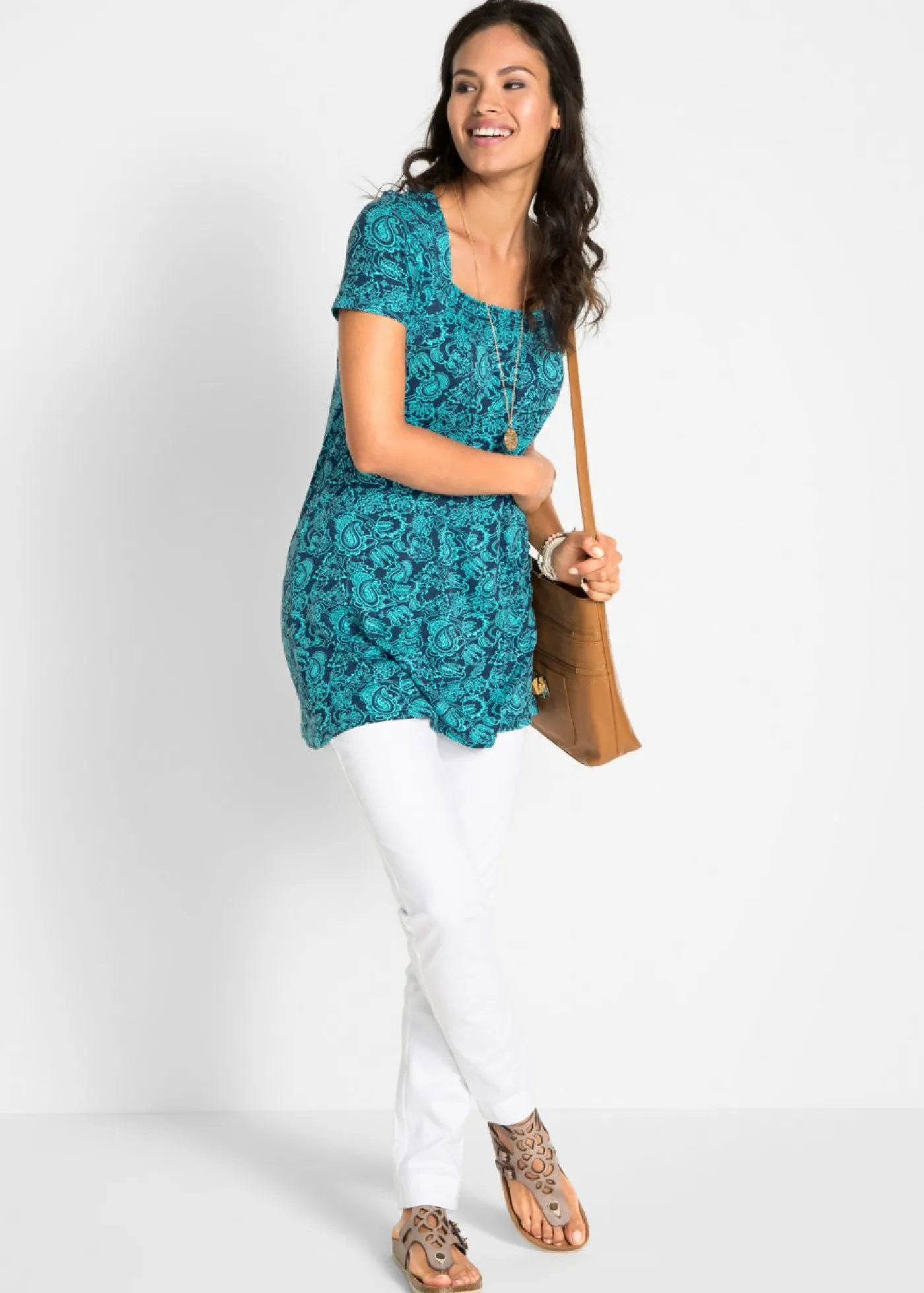 Túnica de viscosa fluida con manga corta y escote fruncido. Largo de aprox. 76 cm (talla 36/38) a 86 cm (talla 56/58). Se puede lavar a máquina.