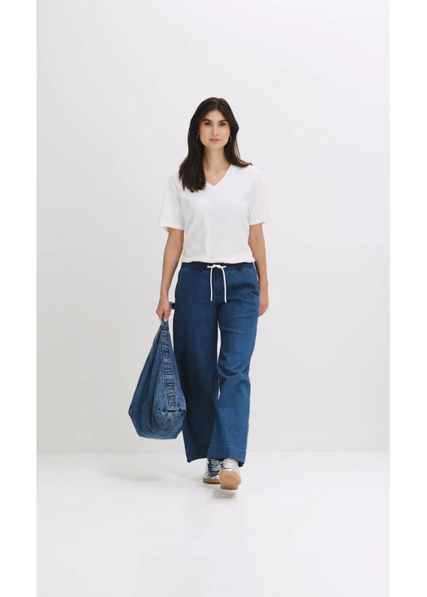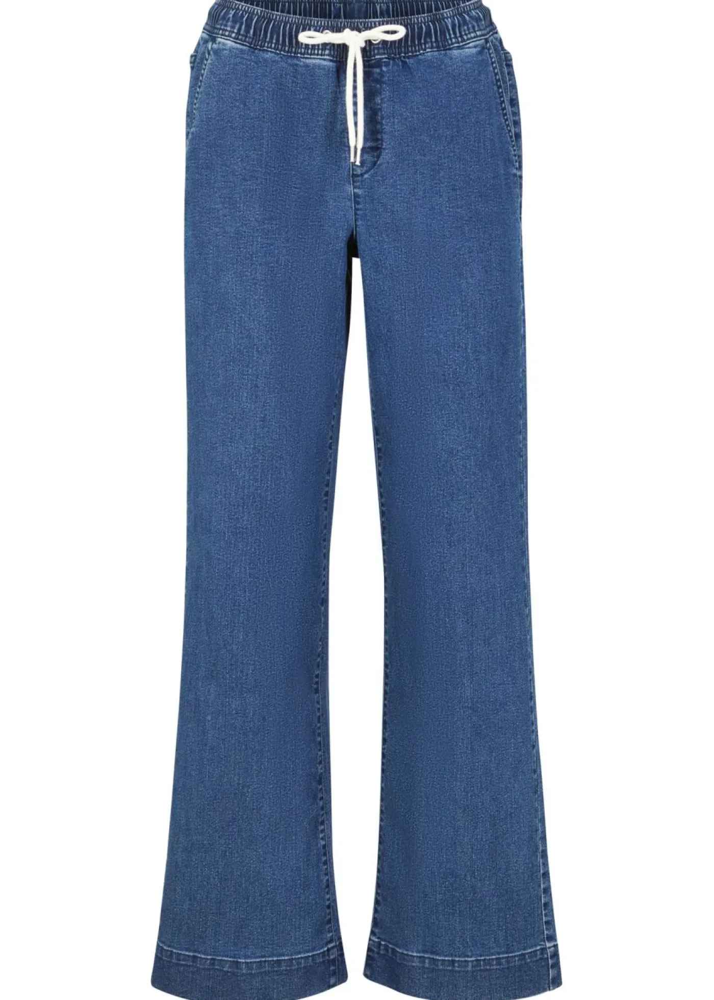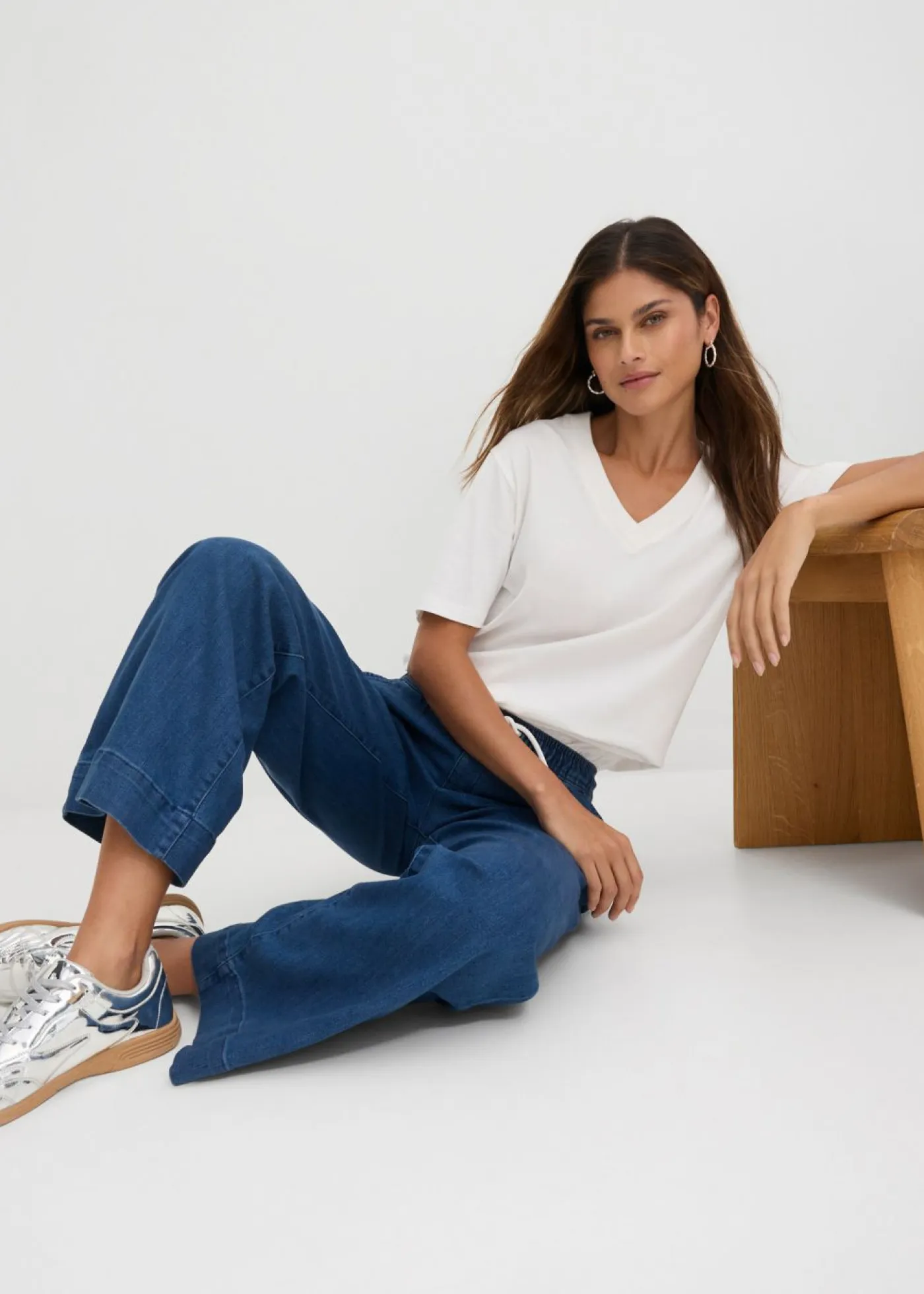 Vaqueros elásticos anchos sin cierre con un cinturón. Largo de aprox. 78,5 cm en talla 42. Se puede lavar a máquina.