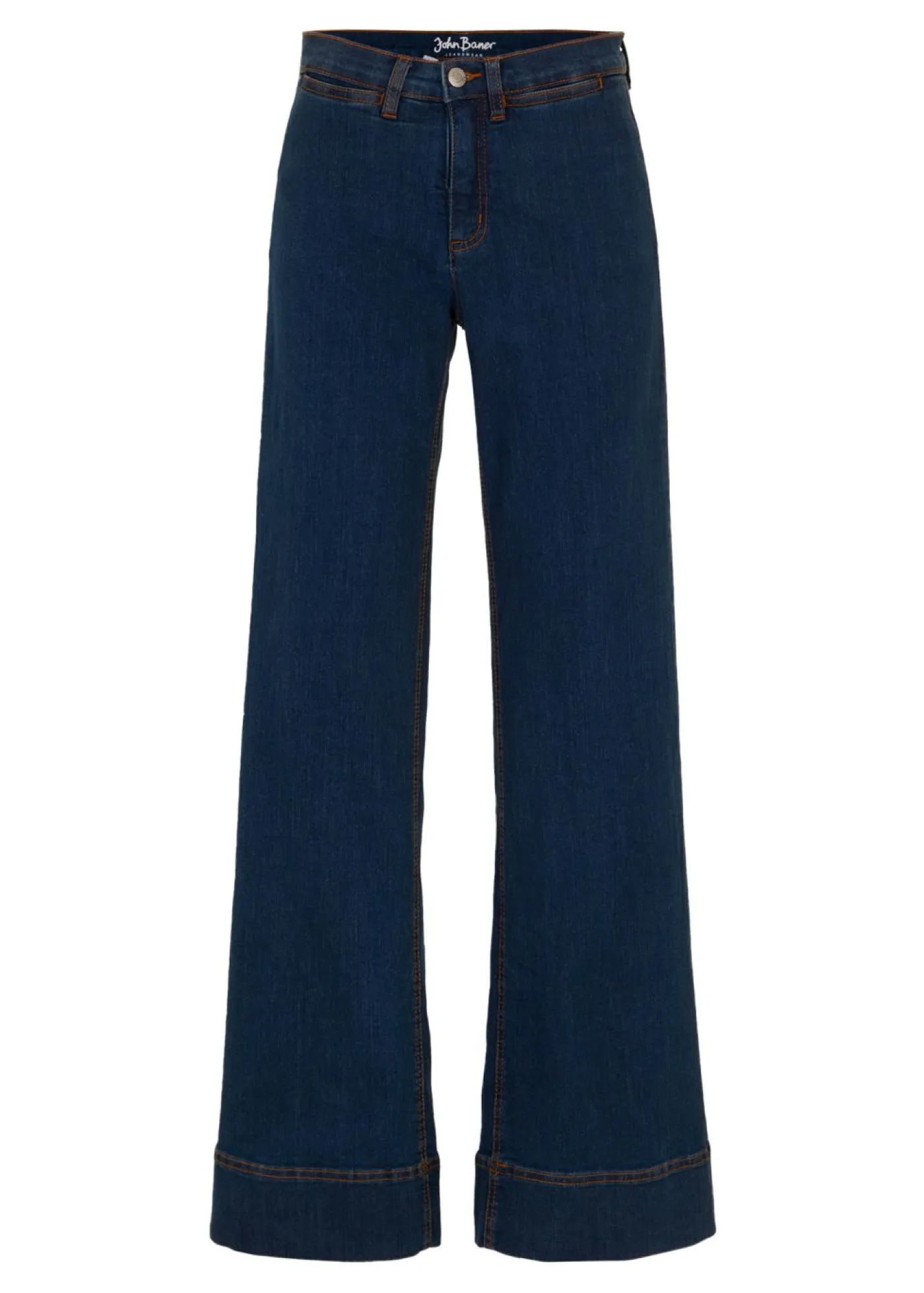 Vaqueros elásticos con pernera ancha y talle medio, Largo. regular