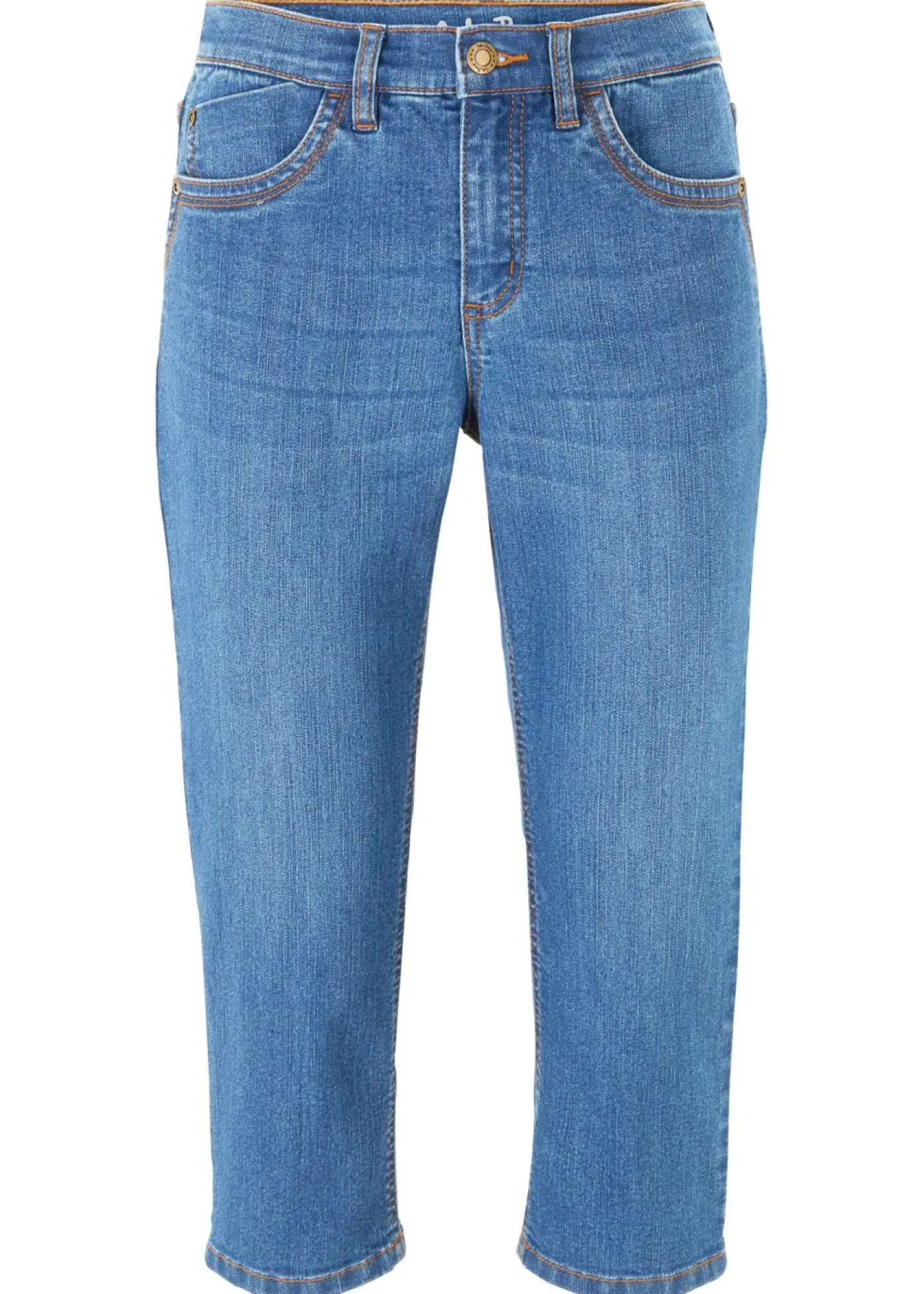 Cómodos vaqueros elásticos de corte capri. Largo interior de la pierna de aprox. 48,5 cm en talla 42. Se puede lavar a máquina.
