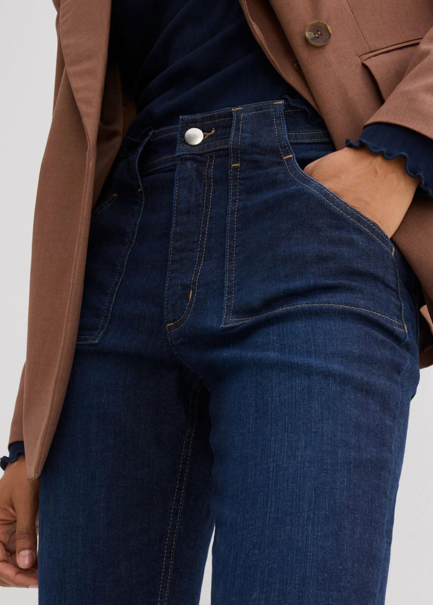 Vaqueros flared, high waist de algodón orgánico, Largo. regular
