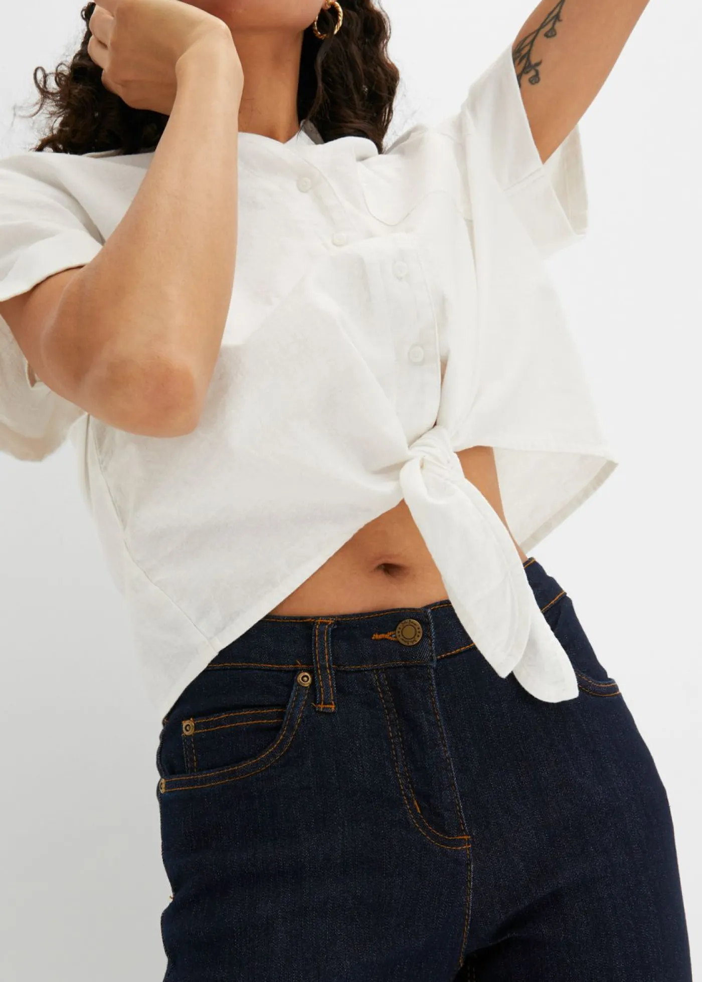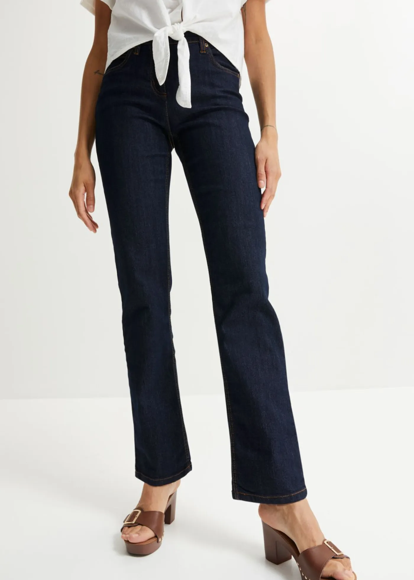 Vaqueros straight, mid waist, elásticos, Largo. petite