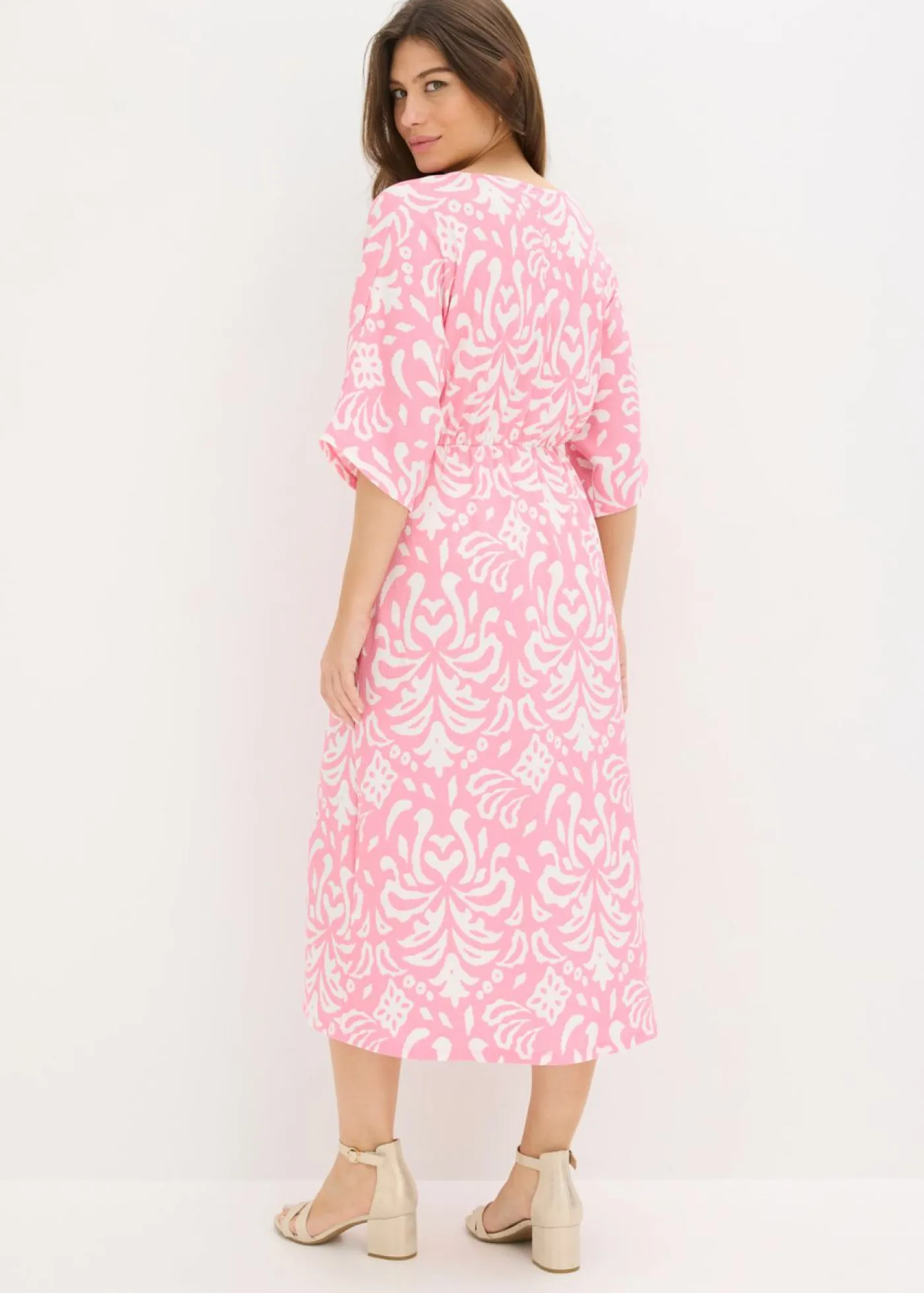 Vestido con estampado moderno, pronunciado escote en V y abertura en la parte delantera de la falda.