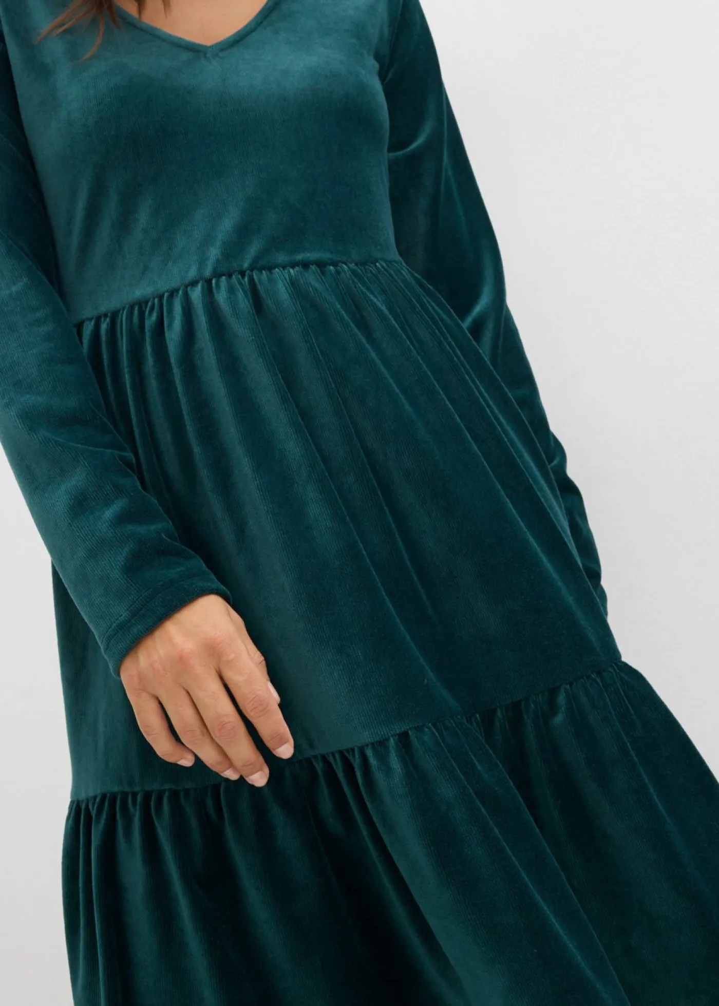 Divertido vestido de terciopelo con fruncidos. Largo de aprox. 96 cm en talla 40/42. Se puede lavar a máquina.