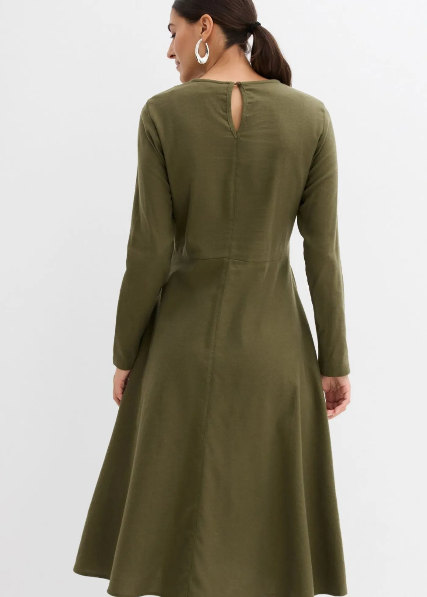 Vestido acampanado con cuello redondo. Largo total de aprox. 114 cm en talla 42. Se puede lavar a máquina.