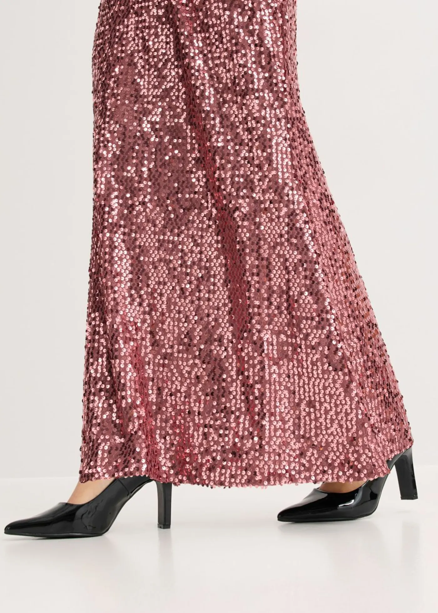 Moderno y femenino: vestido de noche con parte superior oversize y bordado de lentejuelas por toda la prenda.