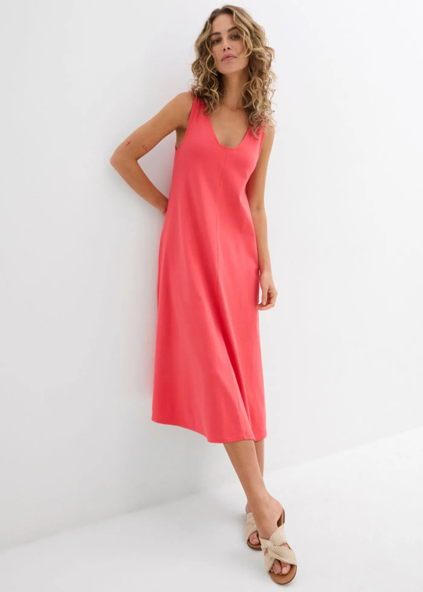 Vestido en A sin mangas con escote en V y espalda abierta.