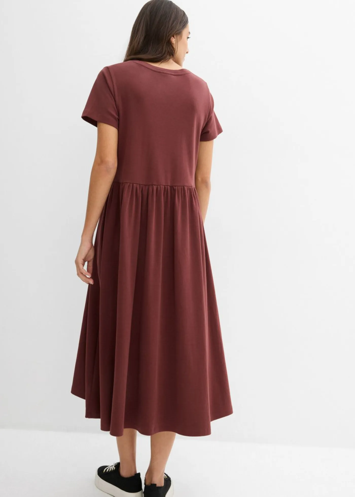 Vestido de punto de algodón pesado con bolsillos laterales y costura divisoria asimétrica. Largo de aprox. 120 cm en talla 40/42. Se puede lavar a máquina.
