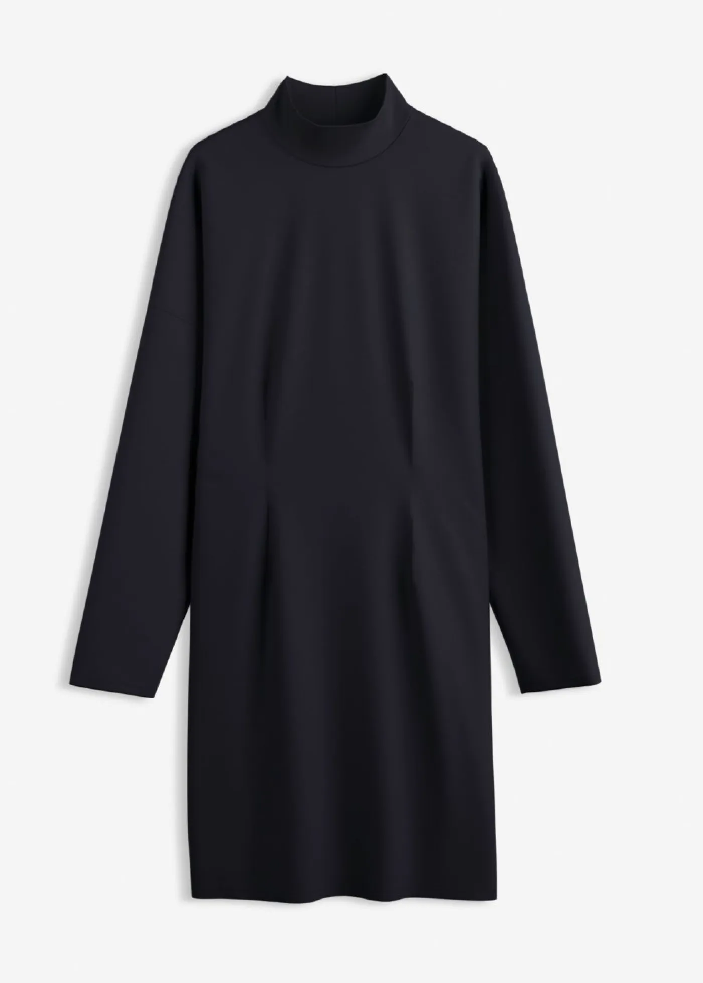 Vestido corto ajustado con cuello vuelto y mangas voluminosas.