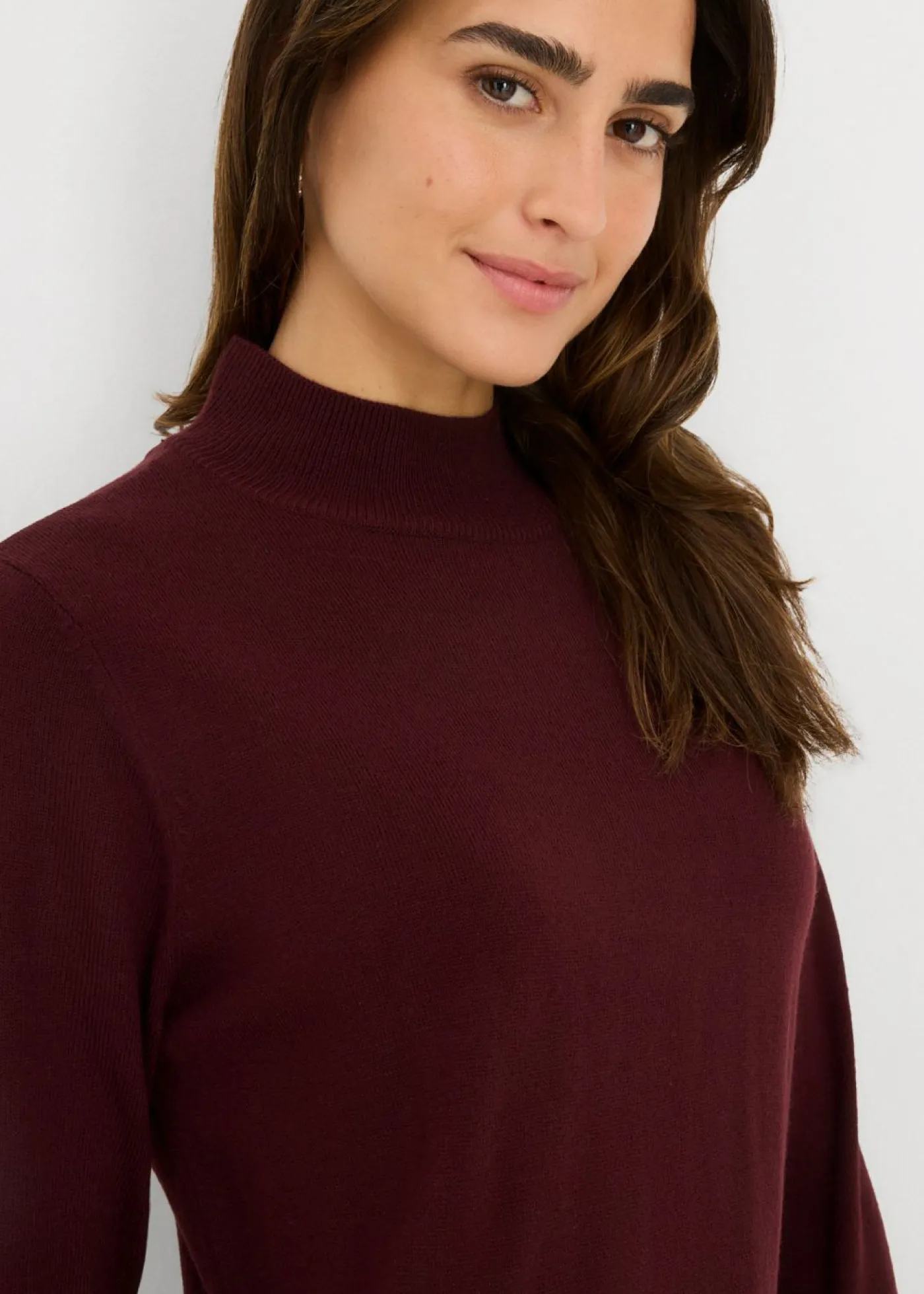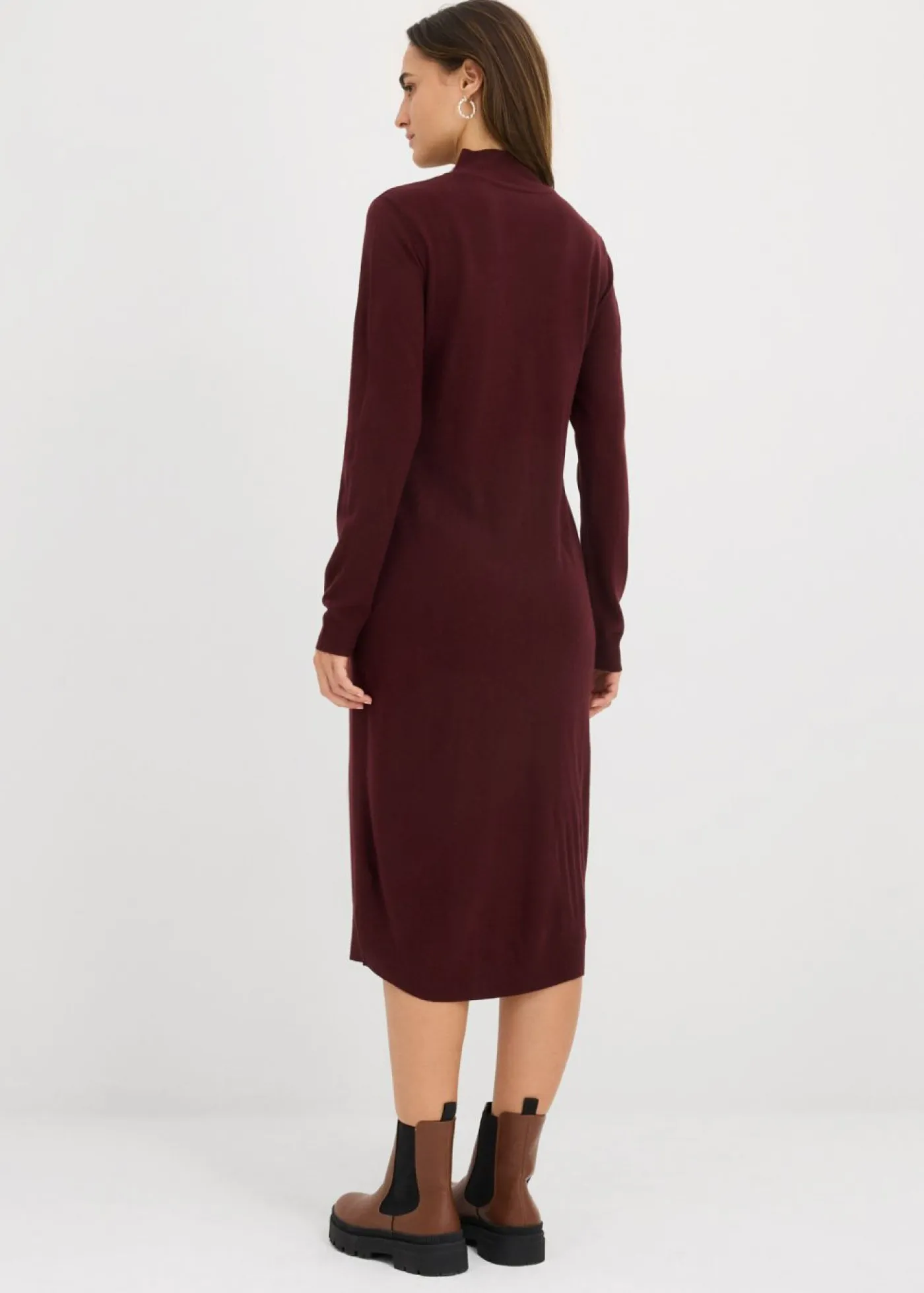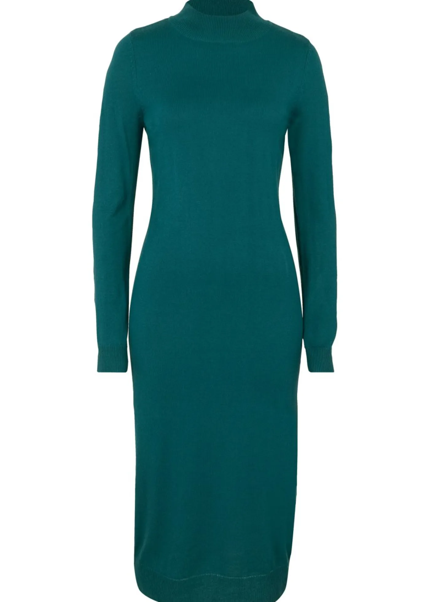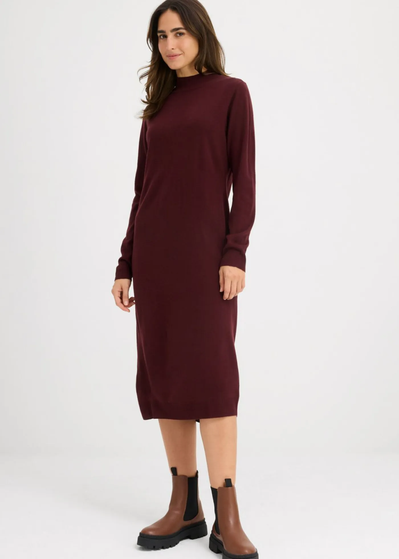 Moderno vestido de punto con cuello alto y manga larga. Largo de aprox. 92 cm en talla 40/42. Se puede lavar a máquina.