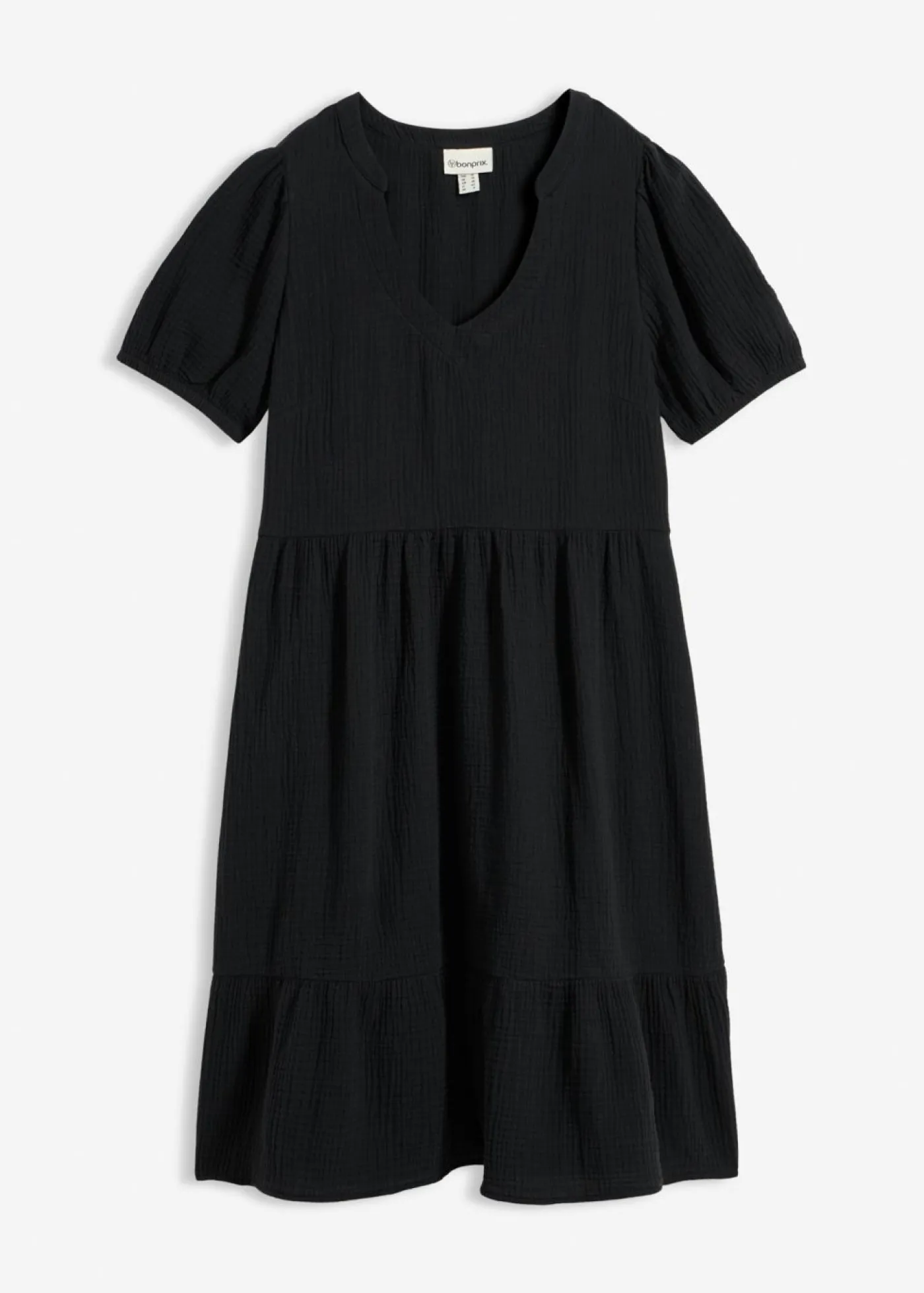 Vestido ancho de algodón con escote en V. Largo de aprox. 100 cm en talla 42. Se puede lavar a máquina.