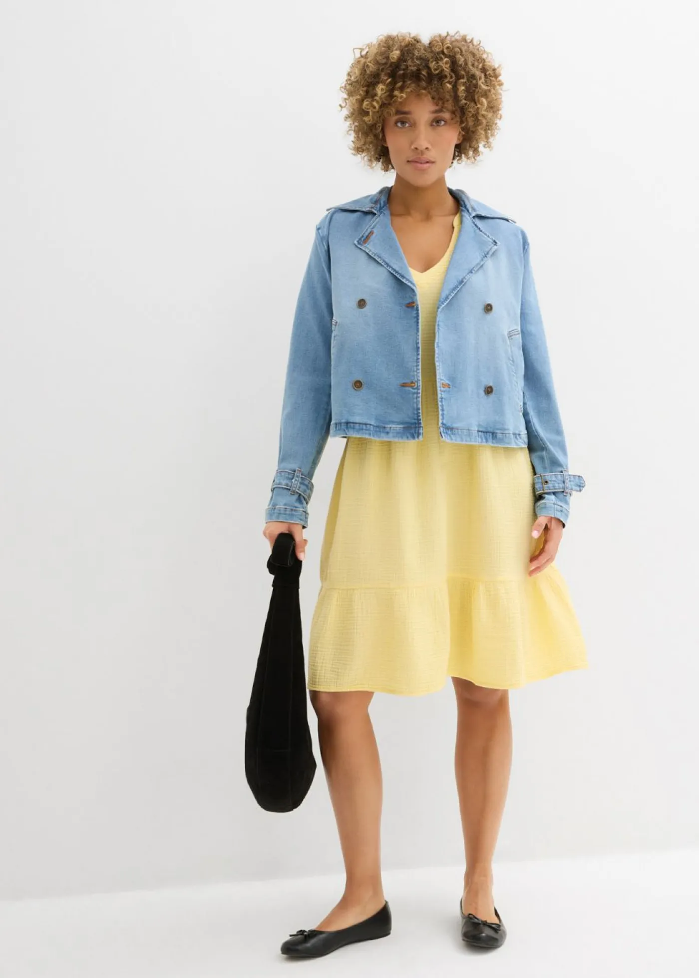 Vestido ancho de algodón con escote en V. Largo de aprox. 100 cm en talla 42. Se puede lavar a máquina.