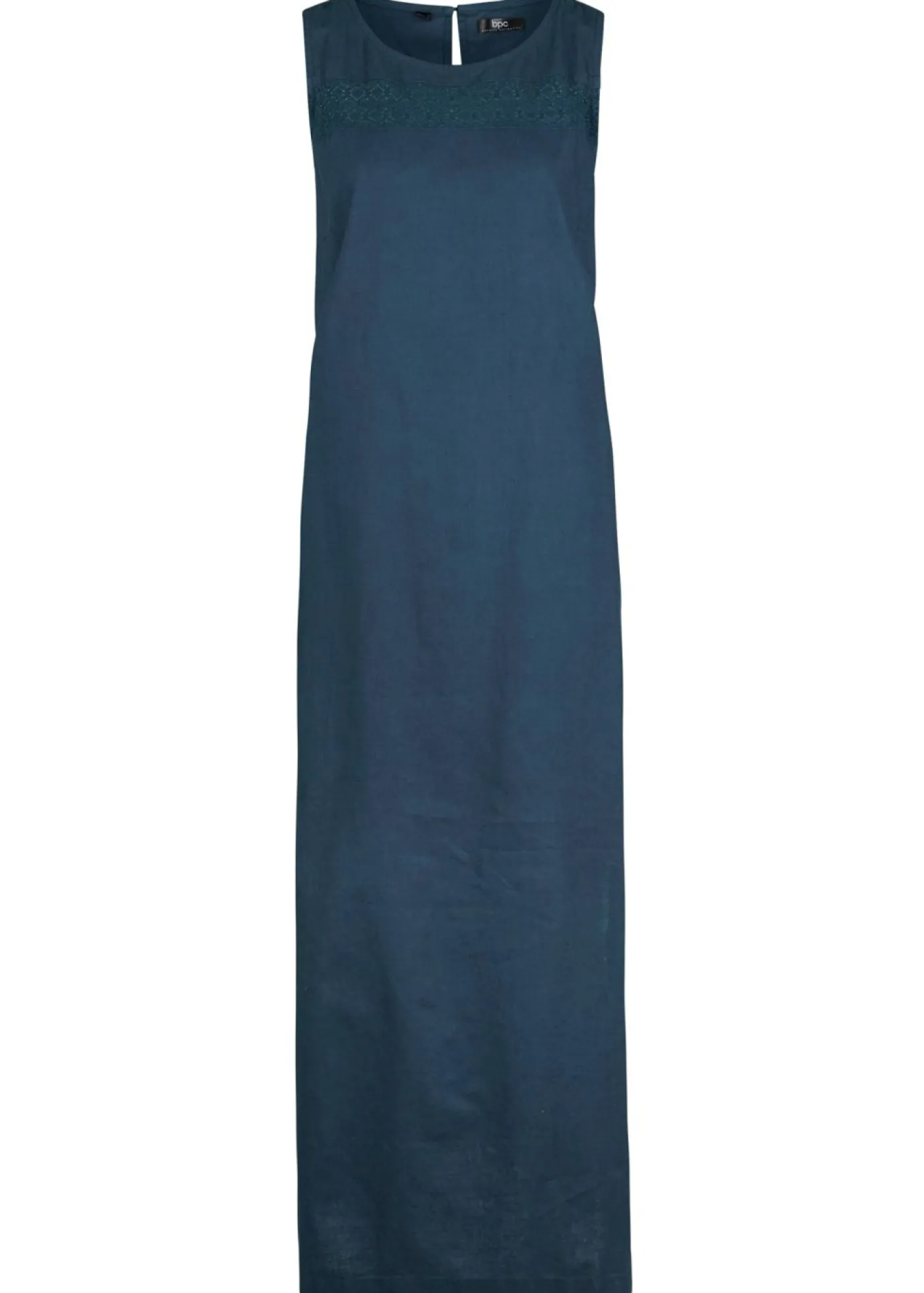 Vestido largo de lino con motivo perforado en el escote y abertura lateral