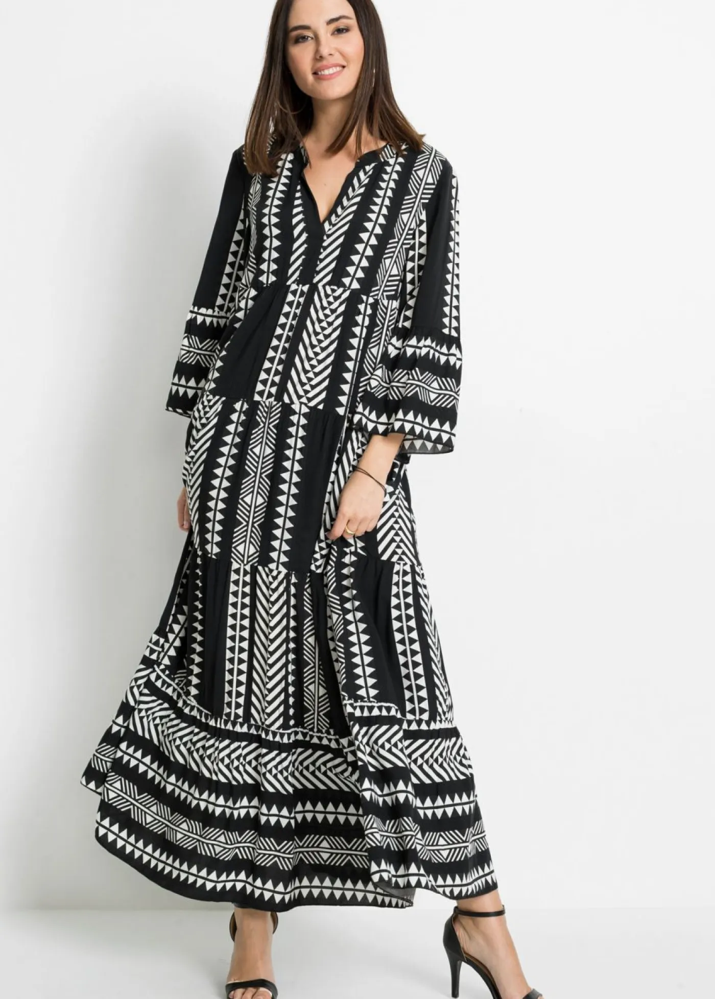 Moderno vestido largo con un bonito estampado.