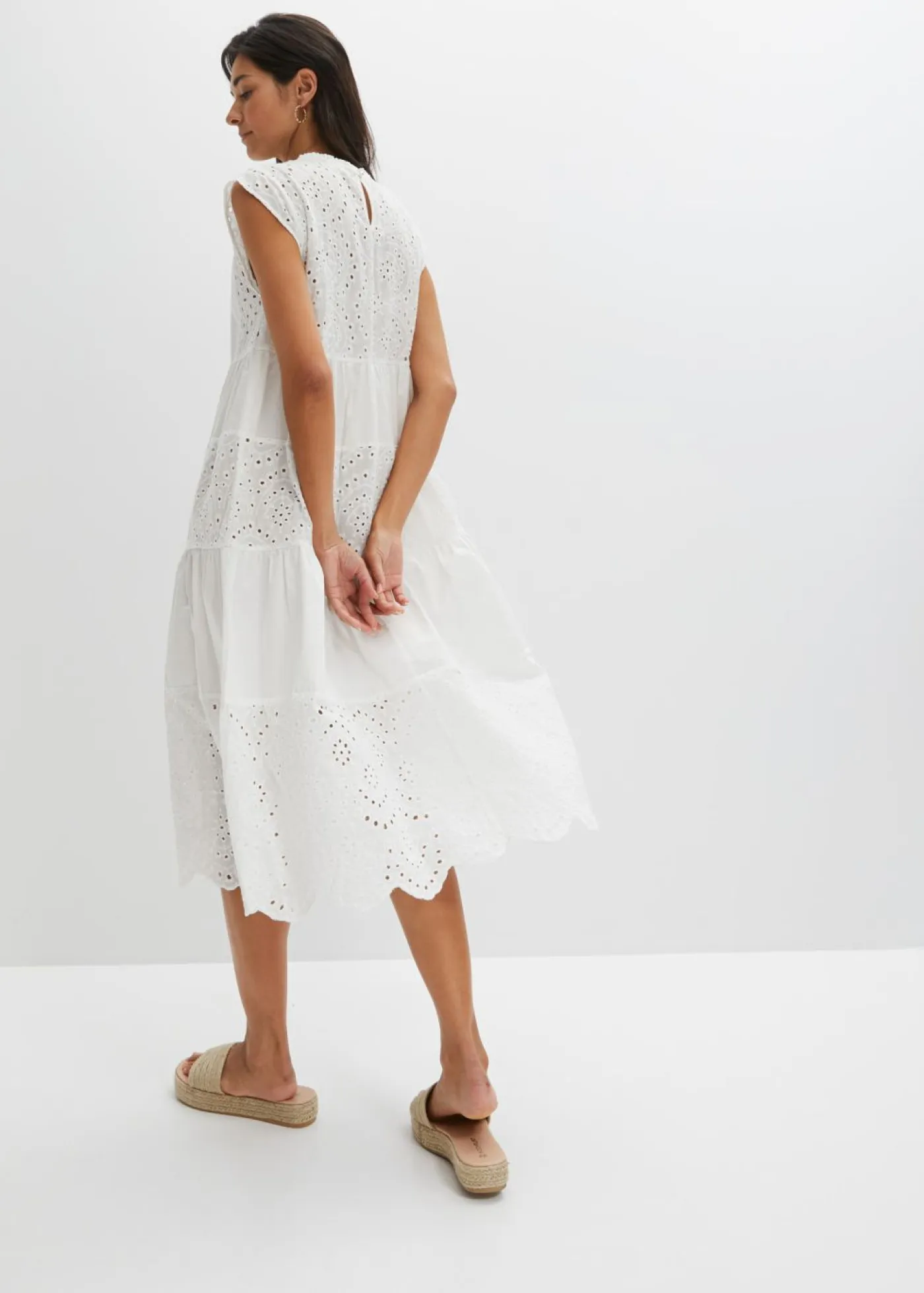 Vestido midi romántico con encaje.
