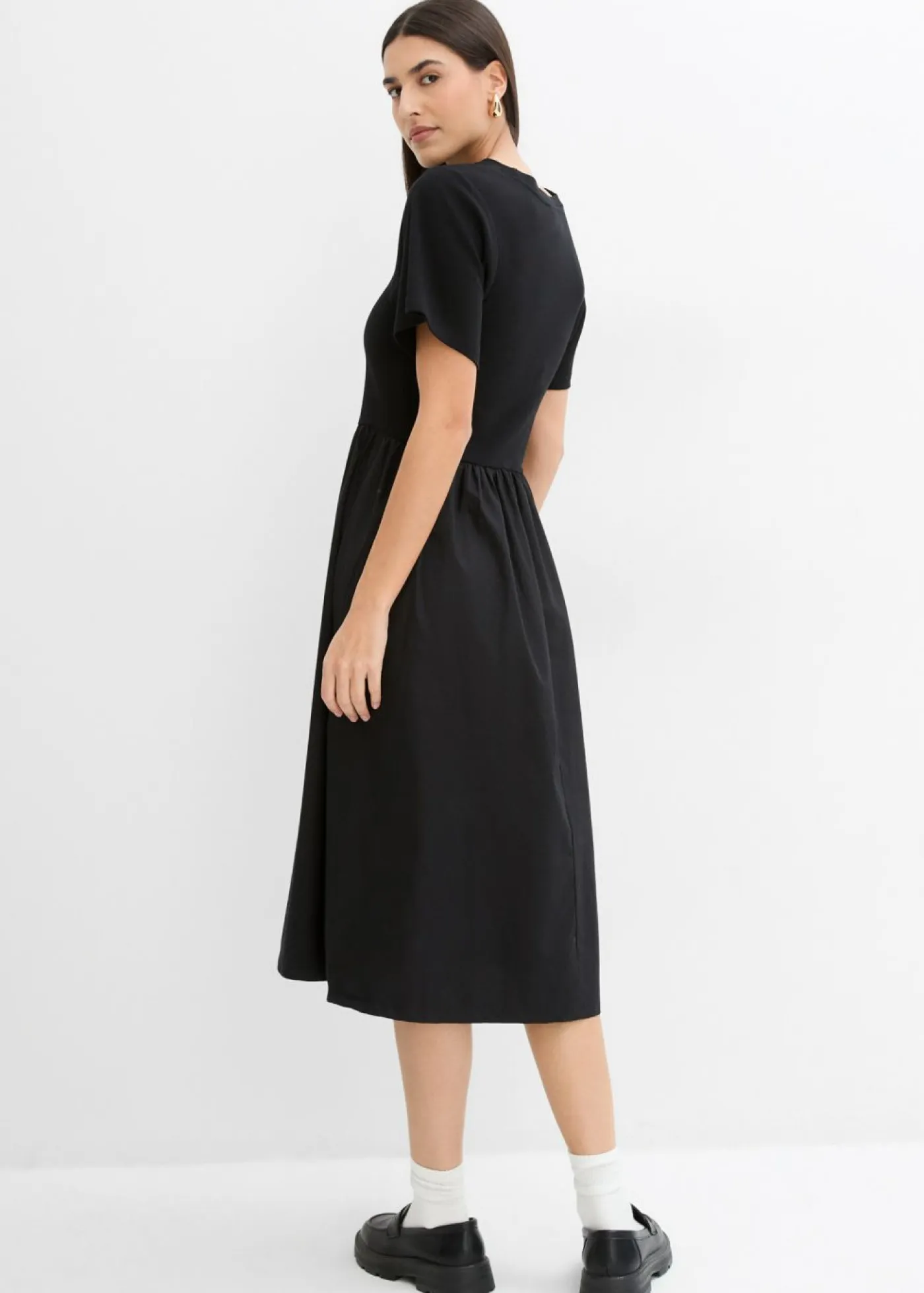 Vestido midi de manga larga con inserto de contraste.
